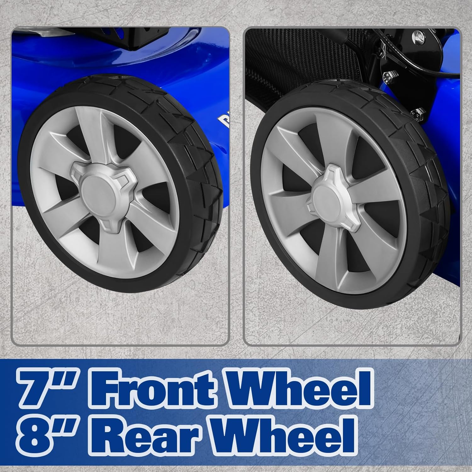 The rear-wheel-drive, single-speed self-propelled function makes mowing large areas smooth and effortless. With a comfortable foam-wrapped angled grip that reduces hand fatigue, maintaining your lawn is more comfortable and less tiring.