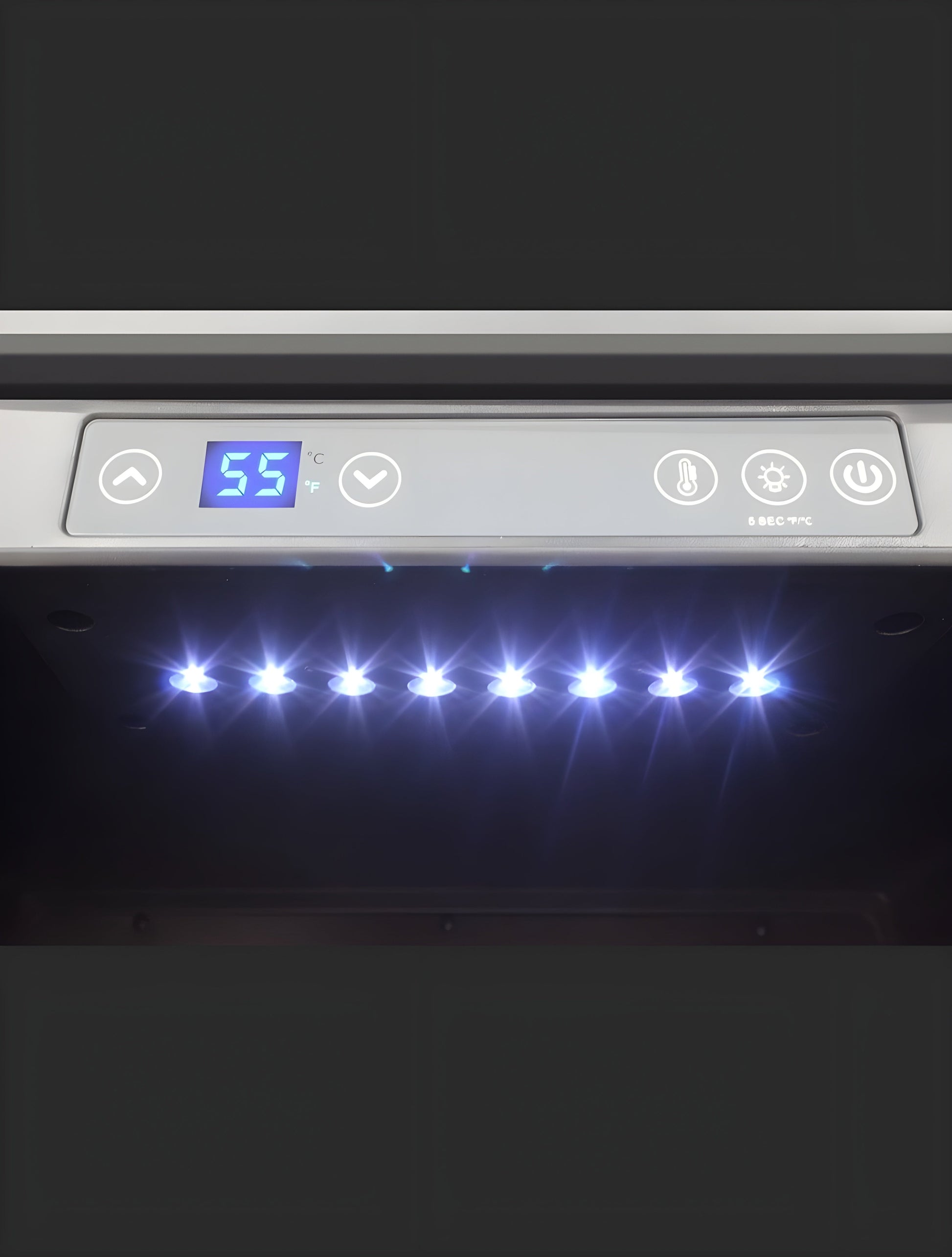 Easy-To-Use Digital Control Panel & Top LED LightSet the right temperature for your wines and beverages with simple digital buttons. Top LED light illuminates your collection inside the insulated glass door.
