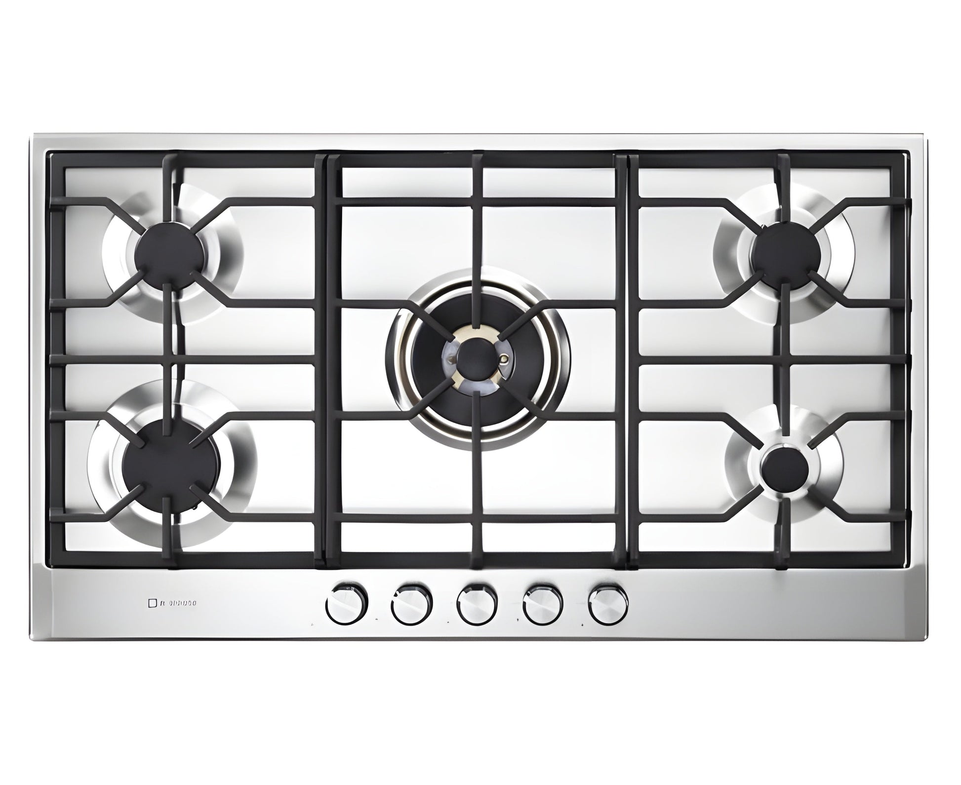 A: It has 5 sealed brass burners, designed for even heat distribution and durability.