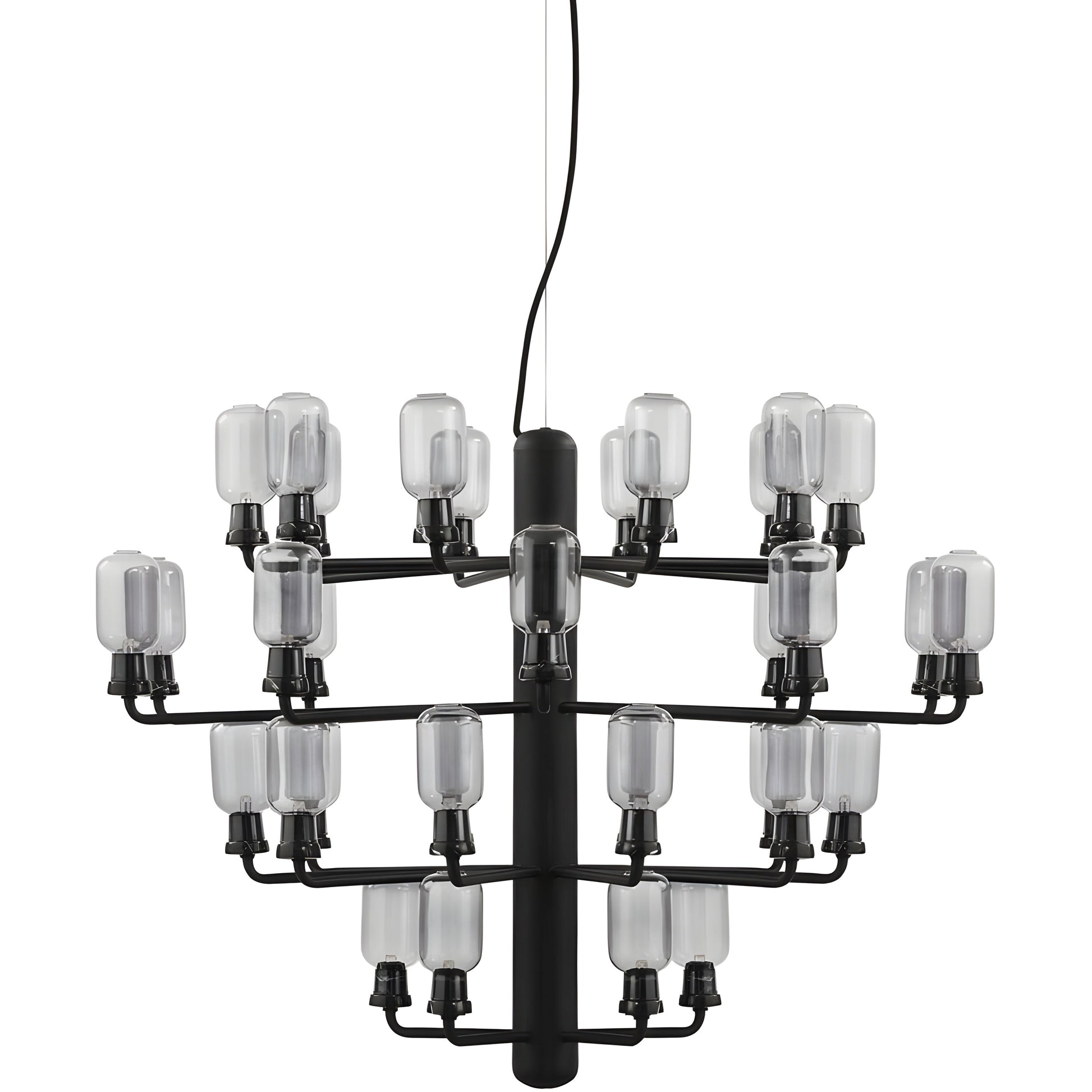 Designed for both beauty and function, the Amp Chandelier measures 62.5 cm in height and 85 cm in diameter. It features 35 G4 LED bulbs that provide soft, even lighting. The lightweight steel frame allows the lights to float effortlessly, creating a warm and inviting glow. Additionally, its soft light diffusion makes it ideal for various spaces, from a living room furniture setup to a dramatic hallway fixture.