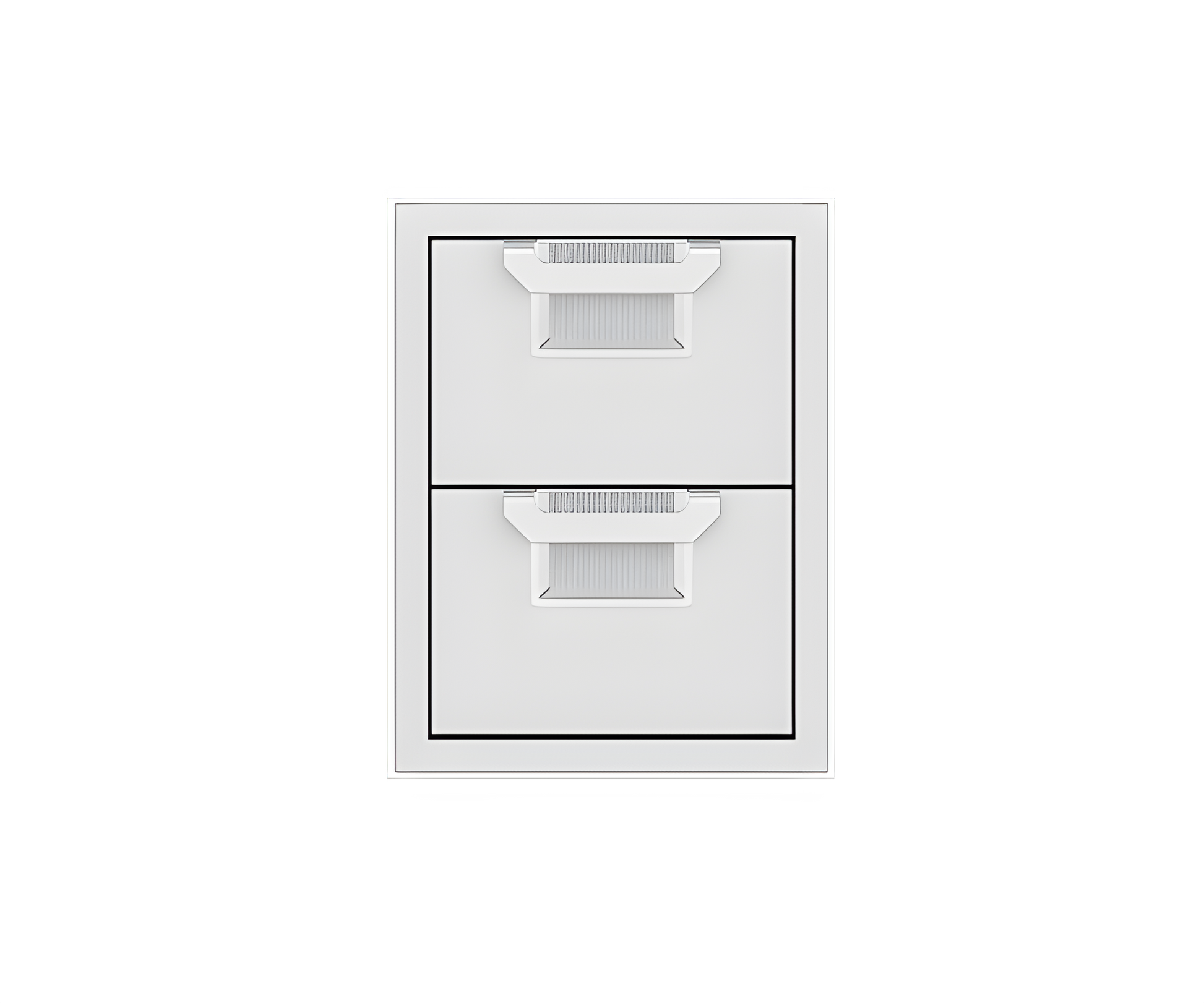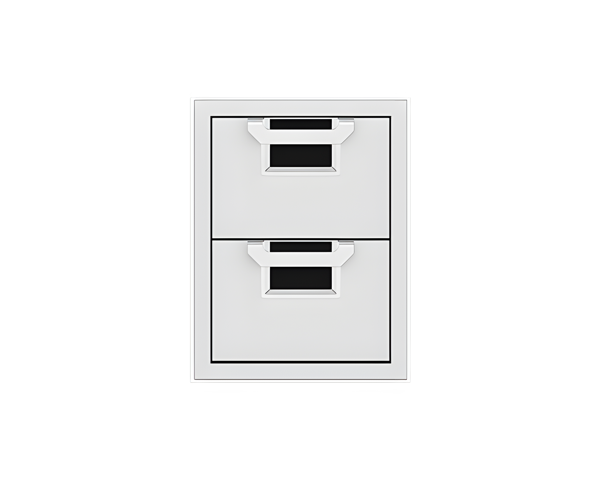 A: A high-quality stainless steel double-drawer unit designed for outdoor kitchens, offering organized storage.