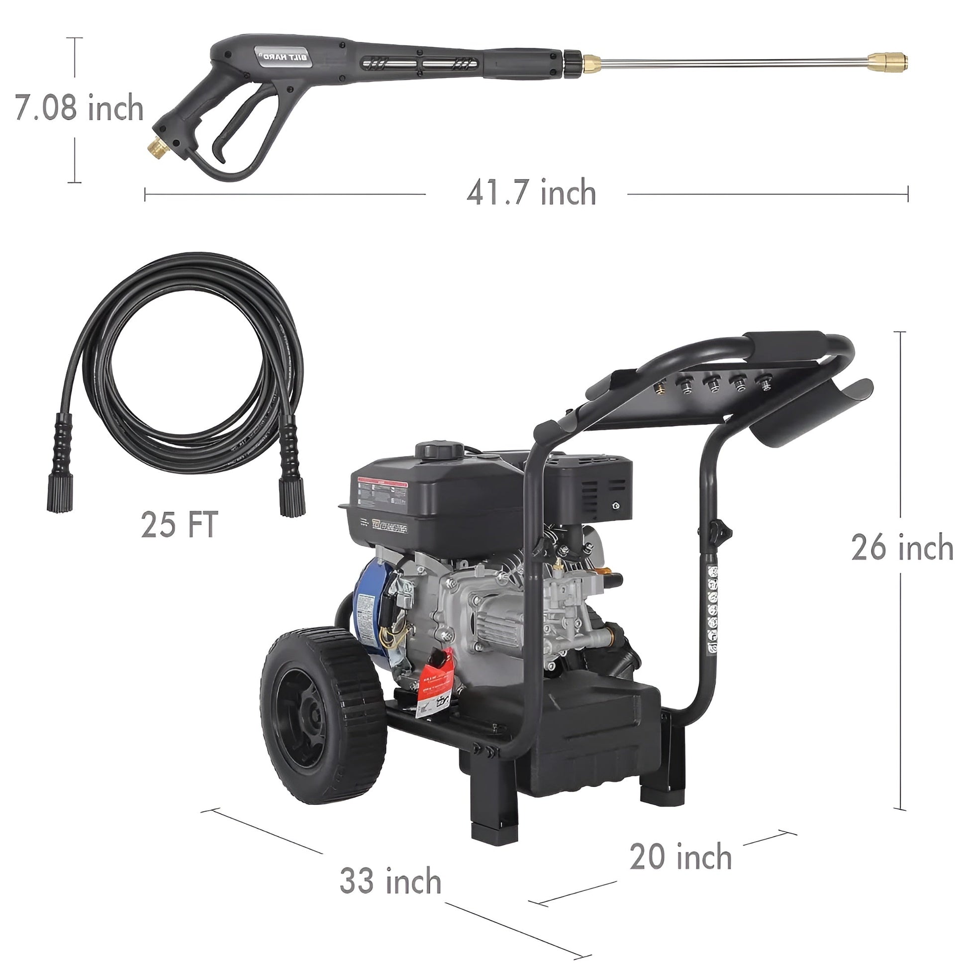 Q: What are the key features of the BILT HARD Gas Pressure Washer?