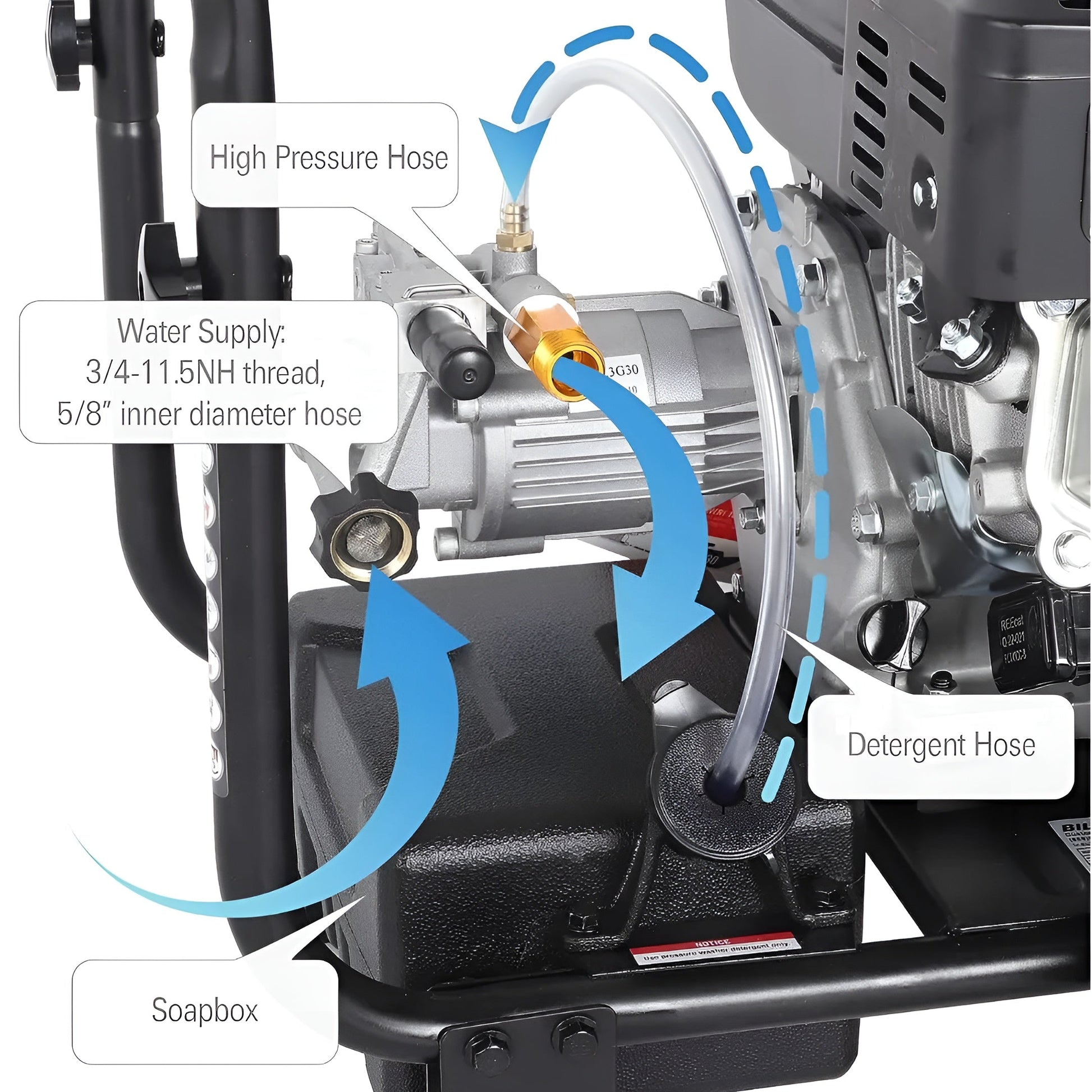 Fueling your success is simple with our 0.9gal fuel tank, compatible with 87+ unleaded gasoline. For oil, we recommend SAE 10W-30 to keep your machine running smoothly. We've even integrated a 1 gal soap tank, allowing you to infuse your cleaning with your preferred detergent or chemical for that extra punch.