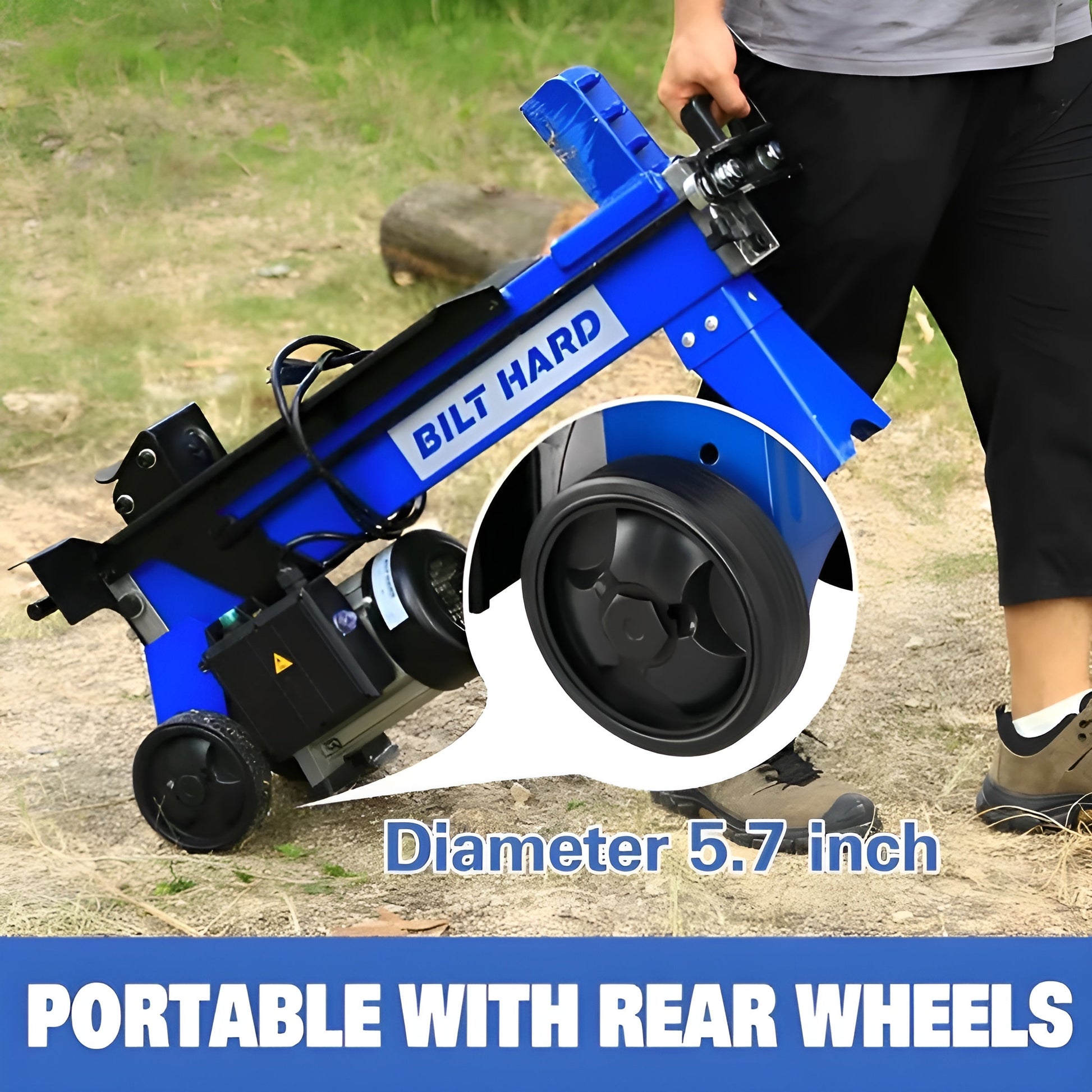 Equipped with robust 5.7-inch transport wheels, this log splitter is ready to roll at your command. Its lightweight horizontal full beam design, combined with a steel wedge, ensures smooth maneuvering across various terrains. Conquer sandy beaches, muddy pathways, and uneven roads with unmatched ease and stability.