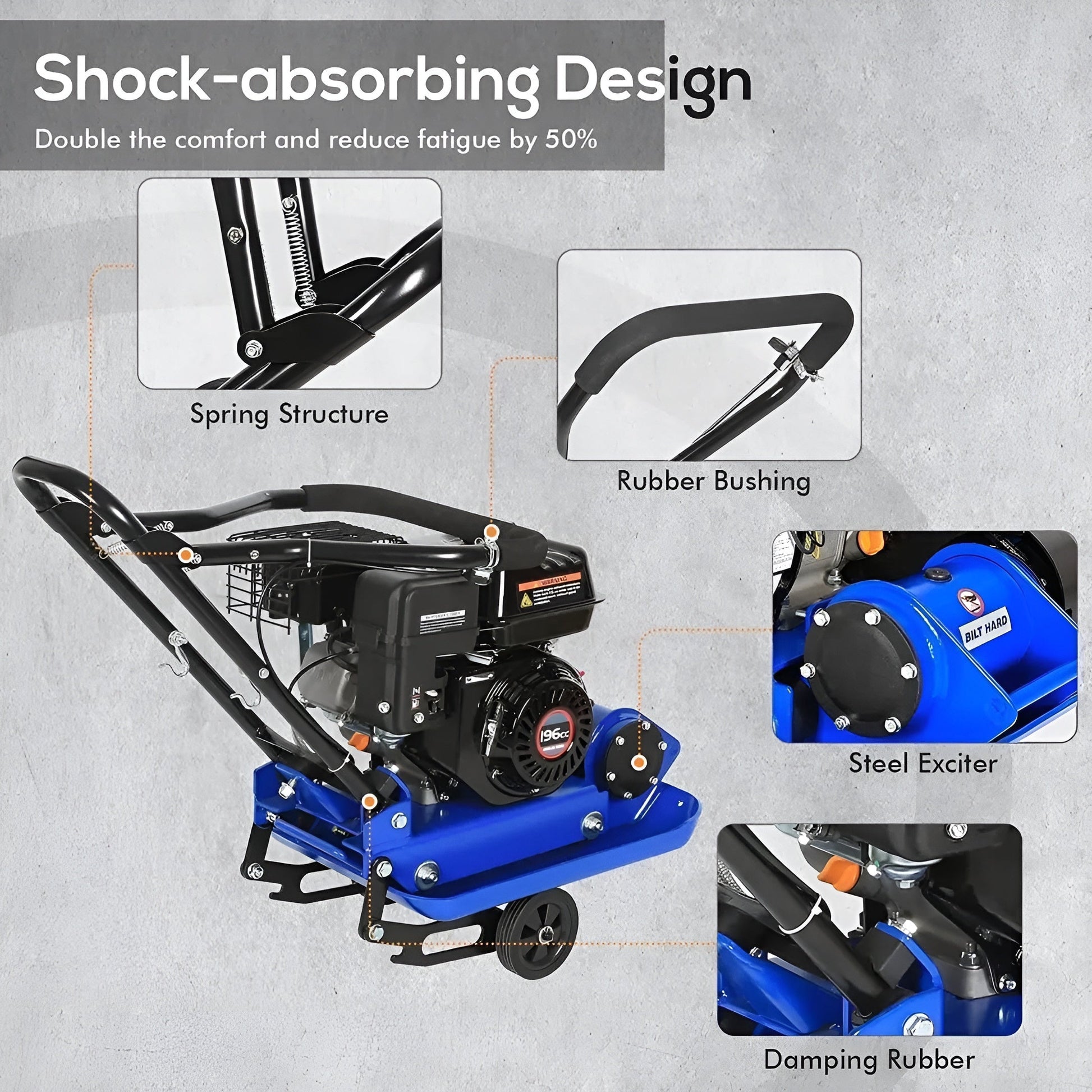 Q: What are the key features of the BILT HARD 2500-Pound Plate Compactor?