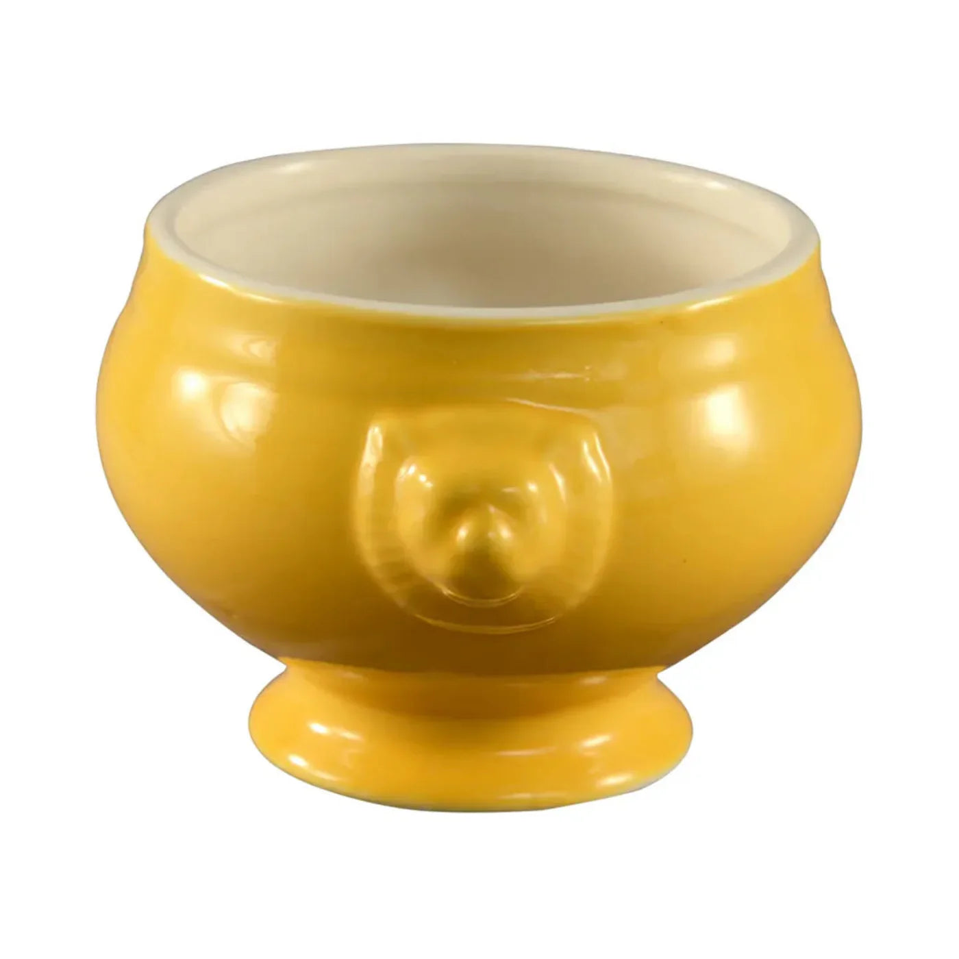 Introduce a burst of color and elegance to your culinary presentations with the CAC China LN-15-Y Lion Head Yellow Bouillon. Perfect for the upscale demands of hotels, restaurants, and catering services, this exquisite 15 oz bouillon cup brings a stylish twist to traditional servings. Crafted from high-quality materials, it is adorned with distinctive lion head motifs that exude a classic charm with a contemporary edge. Its vibrant yellow hue is sure to brighten any table setting, making your soups and broths stand out with an aesthetic appeal. Durable and designed for professional use, this bouillon cup pairs functionality with style, enhancing the dining experience for your clients.