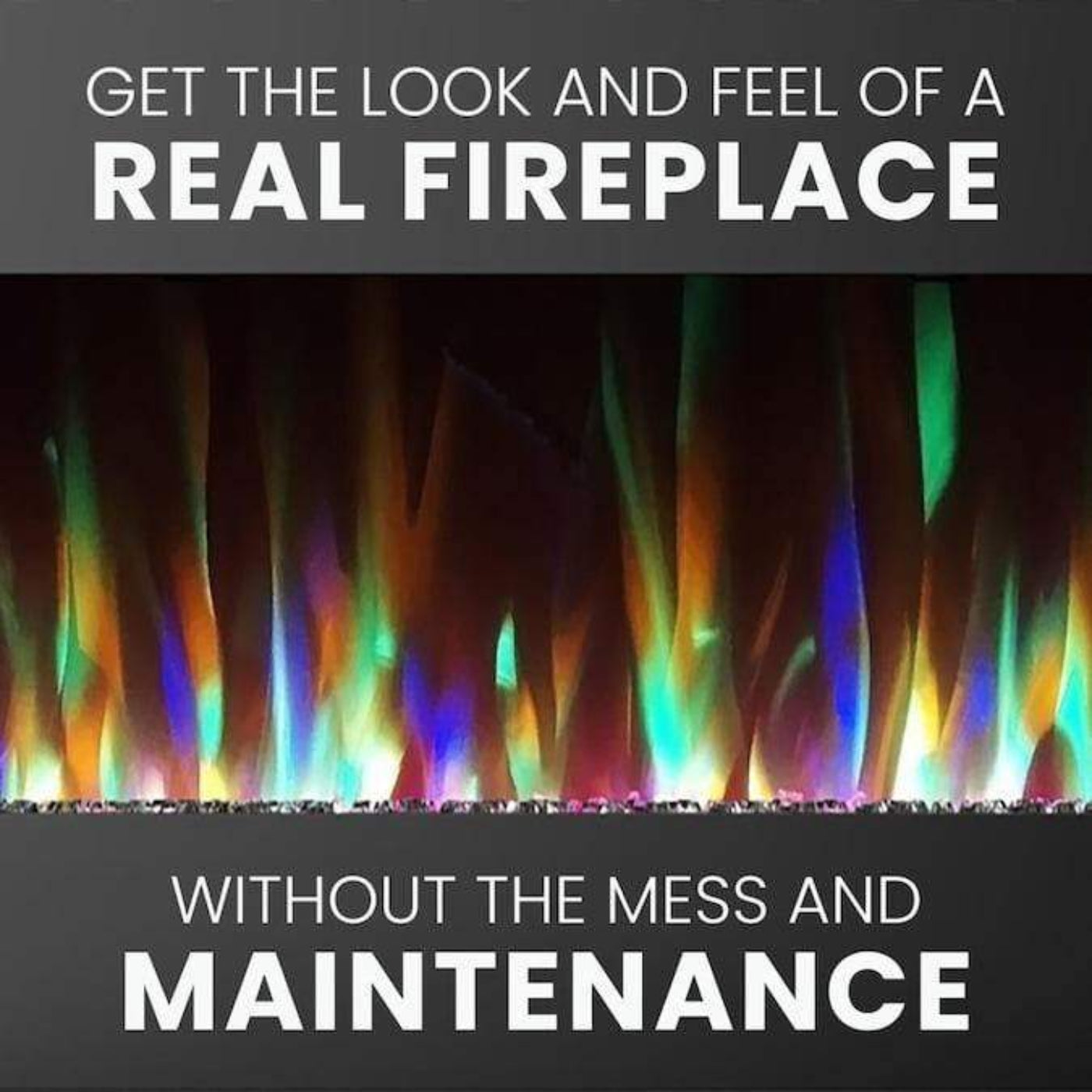 Enjoy the perfect ambiance for your home with Cambridge's recessed, wall-mounted electric fireplace. Our modern and sleek design is perfect for any home and offers a LED color changing display to fit seamlessly into your home's aesthetic. The flames can operate with or without heat, which makes it perfect for warmer seasons and year-round use. A convenient remote control is included so you can easily adjust the settings from anywhere in the room. Our fireplace is easy to install and comes with the options to be wall-mounted or built into the wall. No more hassle of a real fireplace with our Cambridge Electric Fireplace. Get the realistic flame effect of a real fireplace without all the maintenance.
