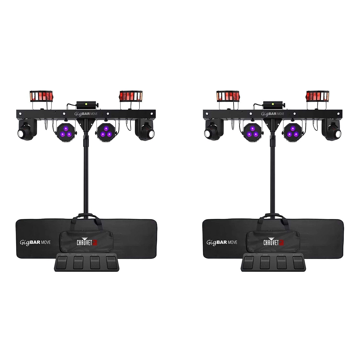 Hit the stage as a professional with the CHAUVET DJ Gig Bar Move 5-in-1 LED Lighting System with 2 Moving Heads.This gig lighting system is versatile and powerful enough to take your show or gig to new heights. This 5-in-1 system includes moving heads, derbies, washes, and a strobe effect pre-mounted on a single bar. That means you'll have access to a complete light show in one single piece of equipment.The Totem Mode keeps the moving heads focused while in use, while the built-in UV LEDs illuminate objects and make them really pop. Plus, you'll get a tripod, wireless footswitch, and carry bags to ensure quick setup.Take your show to new heights with the CHAUVET DJ Gig Bar Move 5-in-1 LED Lighting System with 2 Moving Heads.
