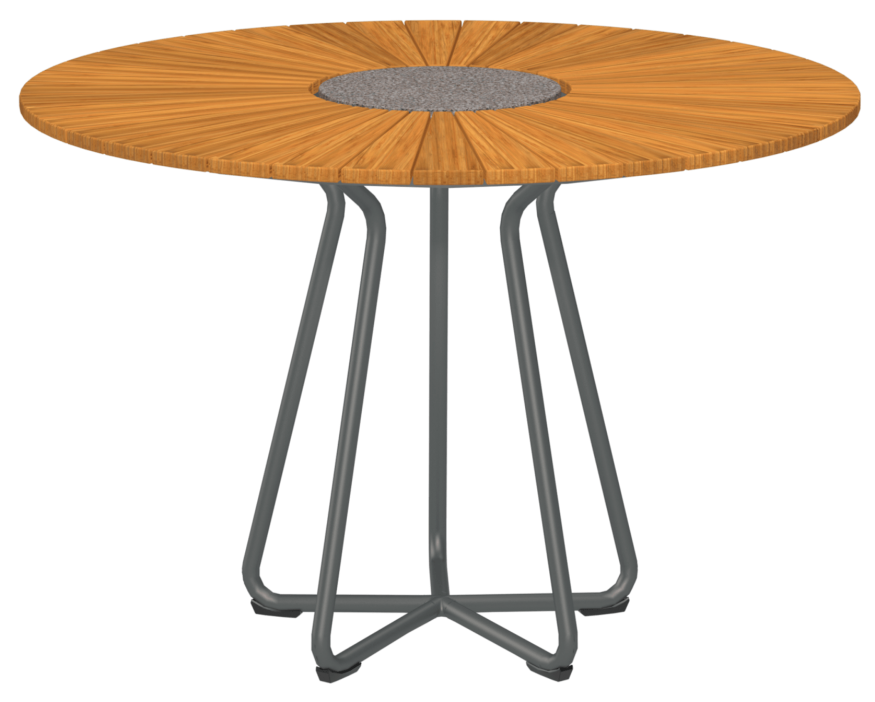 The Houe CIRCLE Outdoor Dining Table blends timeless design with great function. Specifically, it features a bamboo slat tabletop surrounding a central granite stone, creating a sculptural look perfect for outdoor entertaining. Made with durable bamboo and powder-coated aluminum, this table is built to last. Additionally, its pedestal base offers plenty of legroom, comfortably seating six people. Therefore, it suits both home patios and commercial spaces.