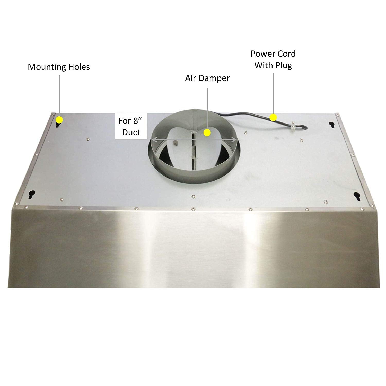 A: It features a high-performance motor with multiple speed settings for effective smoke and odor removal.