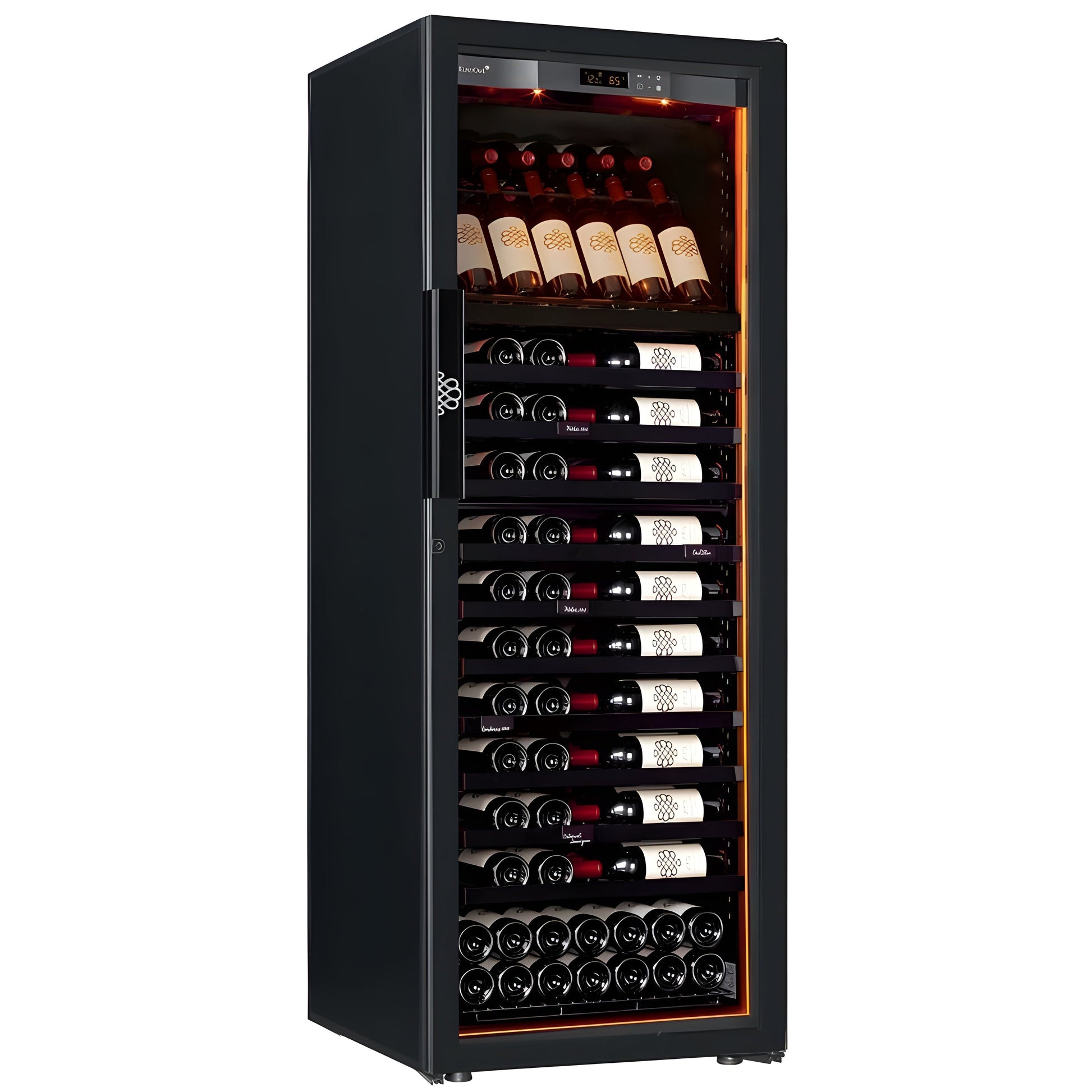 A: This model offers precise temperature control, UV-resistant glass, vibration-free technology, adjustable humidity, and the ability to store wines in ideal conditions for both short-term enjoyment and long-term aging.