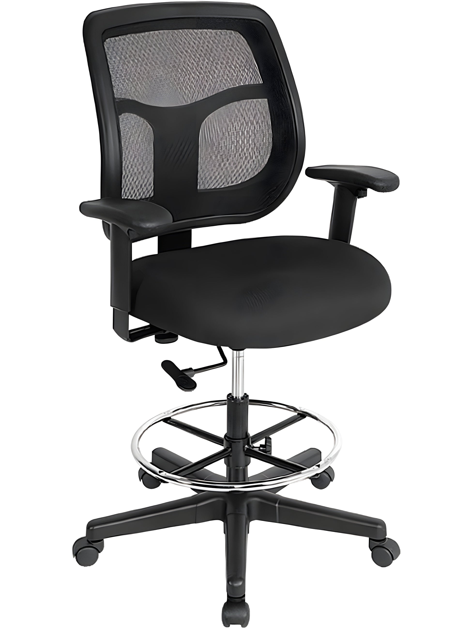 A perennial favorite and a smart design all wrapped up into one! The Apollo EuroTech drafting stool features a mesh-covered foam seat and a coordinated mesh back that will support you all day. This black EuroTech Apollo mesh-back drafting stool Ships Free in 1-2 Days. This drafting-height office chair is backed by the EuroTech Lifetime warranty.