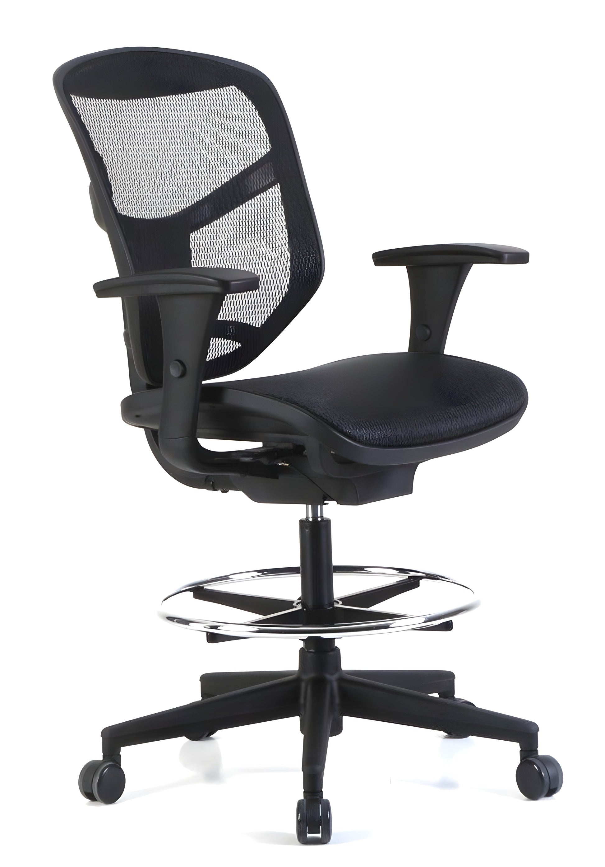 The Concept 2.0 Extended-Height Stool by EuroTech offers a similar look and feel to the Ergohuman brand, but with a friendlier price. The chair offers many features, including one-touch seat height adjustment, 2.8" ratchet back height adjustment, arm height, and depth adjustment. This extended-height stool comes in a soft, cooling black 3D mesh.
