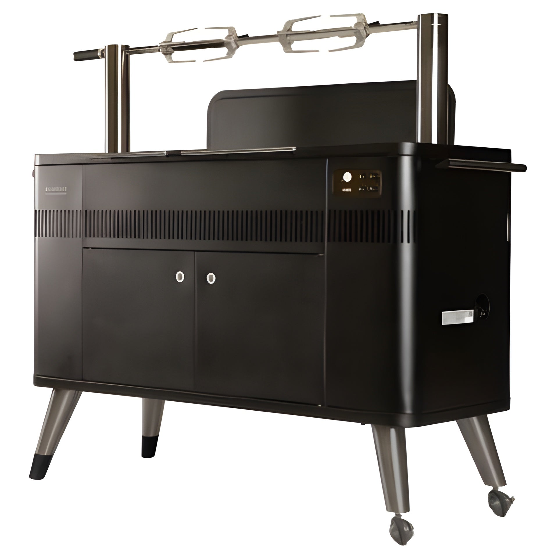 One Touch Rotisserie Pole System: Built-in rotisserie system powered by a discrete motor, with multi-level height adjustment.
