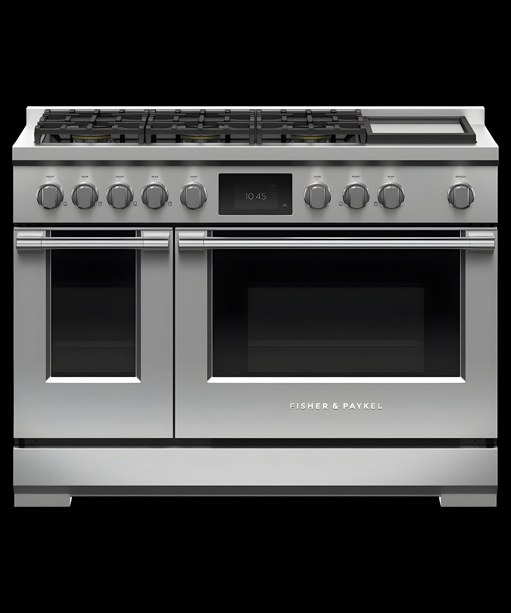 A: The Fisher & Paykel RGV3486GDL is a 48" gas range with 6 powerful burners and a griddle, designed for professional-level cooking and durability in your kitchen.