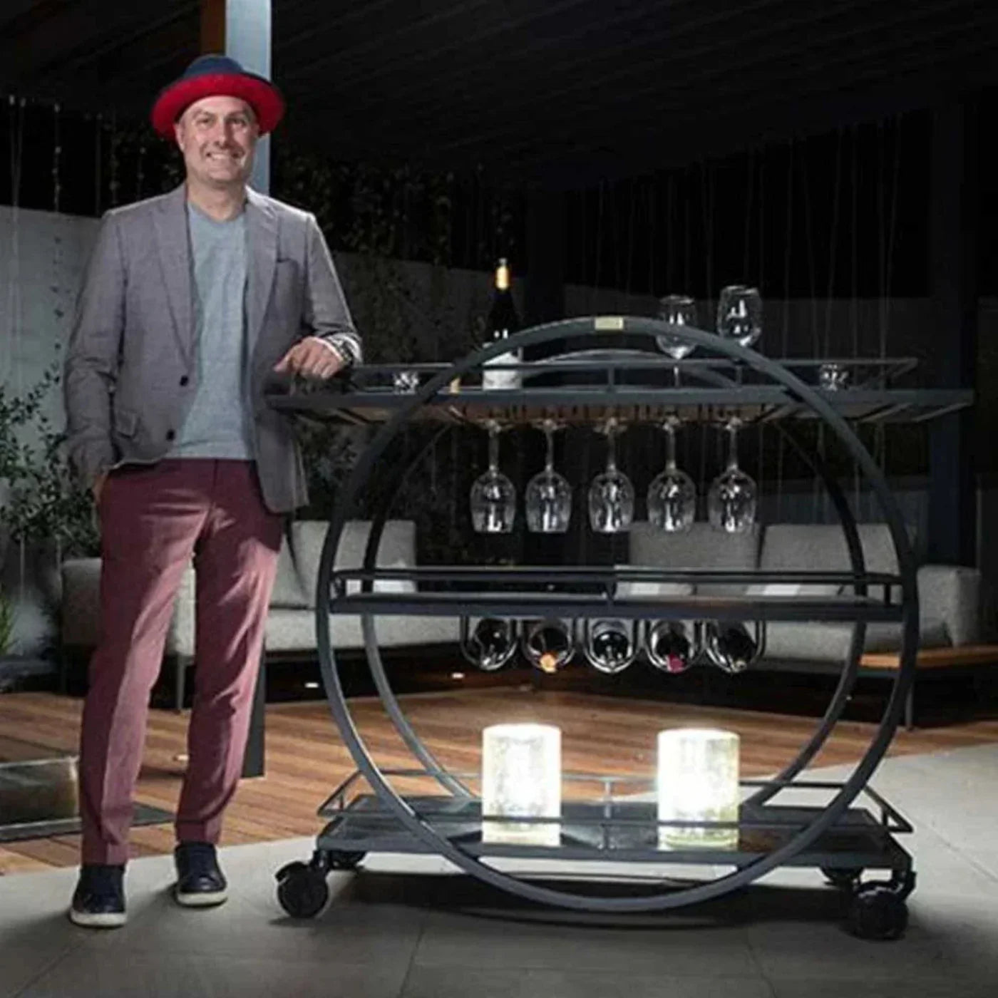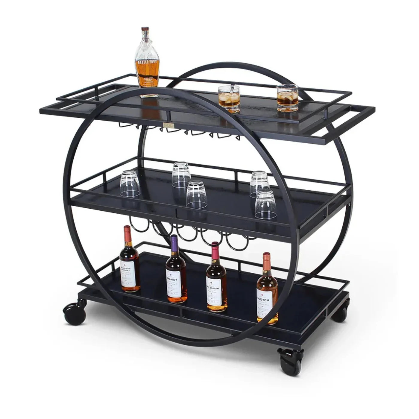 Efficient Storage: Includes perimeter gallery rails on all shelves, along with built-in wine storage and stemware holders, ensuring organized service.
