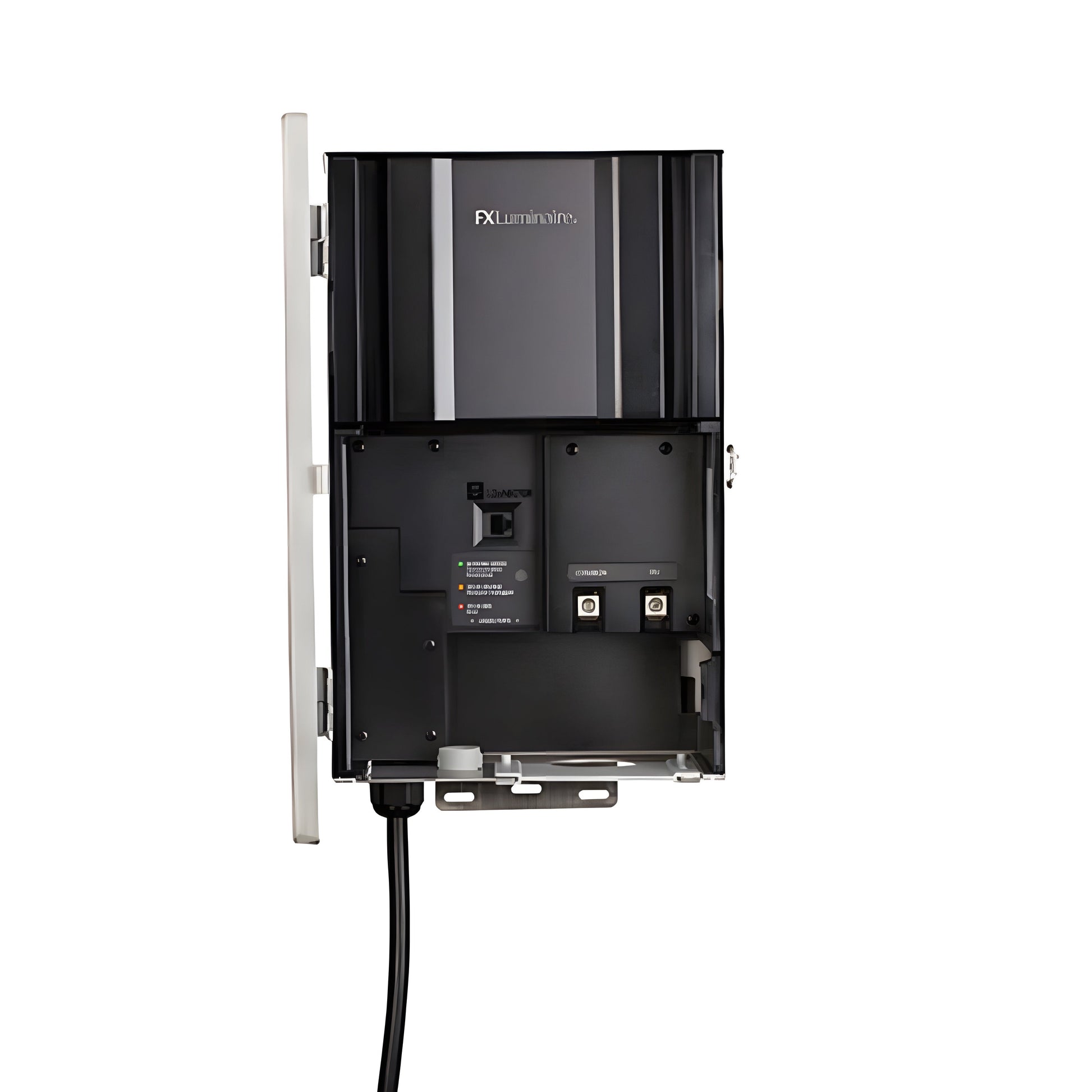 Effortlessly power lighting installations with the FXLuminaire Transformer. Built from stainless steel, it is perfect for extended use. It has a primary voltage of 120V, a 300W power rating, and a 60Hz frequency rating. This transformer allows for iOS or Android control, enabling users to manage the lighting right from their smart device. It is built with a wireless fixture assignment, allowing users to control the lighting directly from their smartphone. It features event-based scheduling for additional customization. This transformer is Luxor-linking compatible and features 250 independent lighting zones.