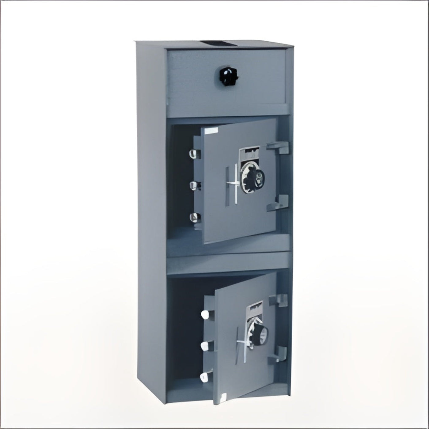 Efficient Depository System: Features a rotary hopper for quick, one-way deposits, ideal for businesses handling cash securely.