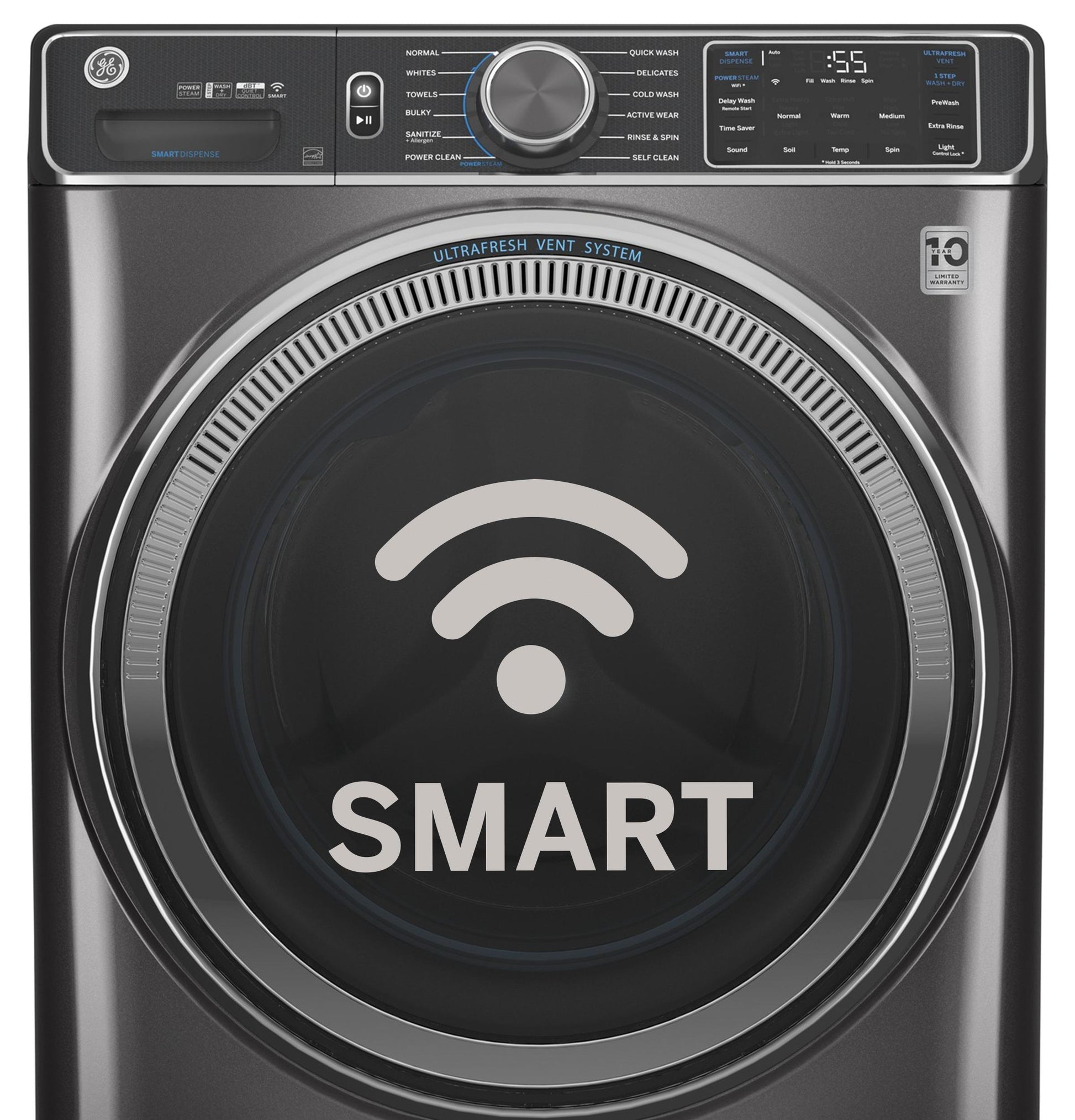 Q: What are the key features of the GE GFW655SSVWW Smart Front Load Washer?