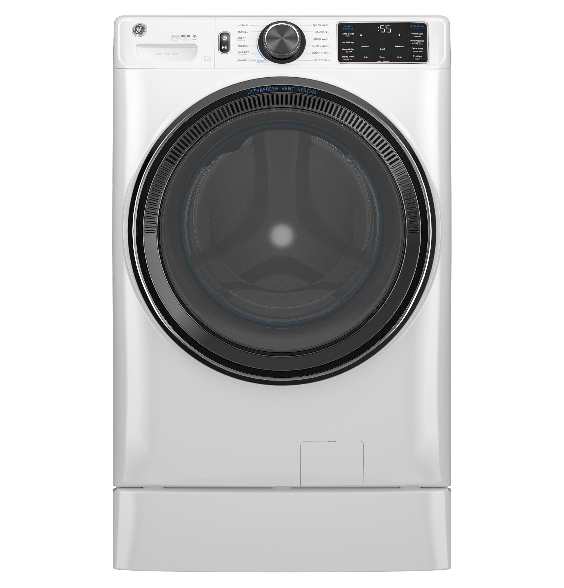 A: This 5.0 cu. ft. ENERGY STAR® certified front load washer features SmartDispense™, UltraFresh Vent System with OdorBlock™, steam cleaning, and Sanitize + Allergen cycles for a deep, hygienic clean.