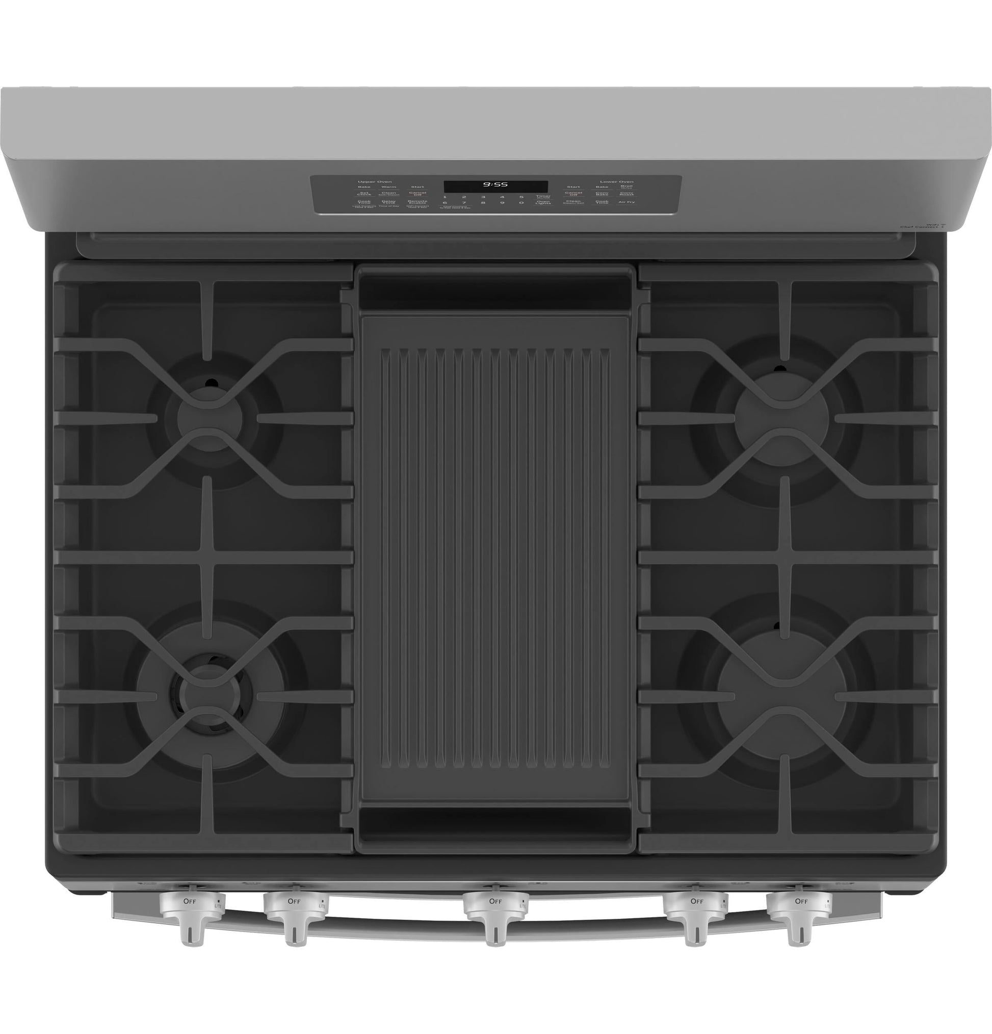 Q: What are the key features of the GE Profile⢠PGB935YPFS 30" Free-Standing Self-Clean Gas Range?