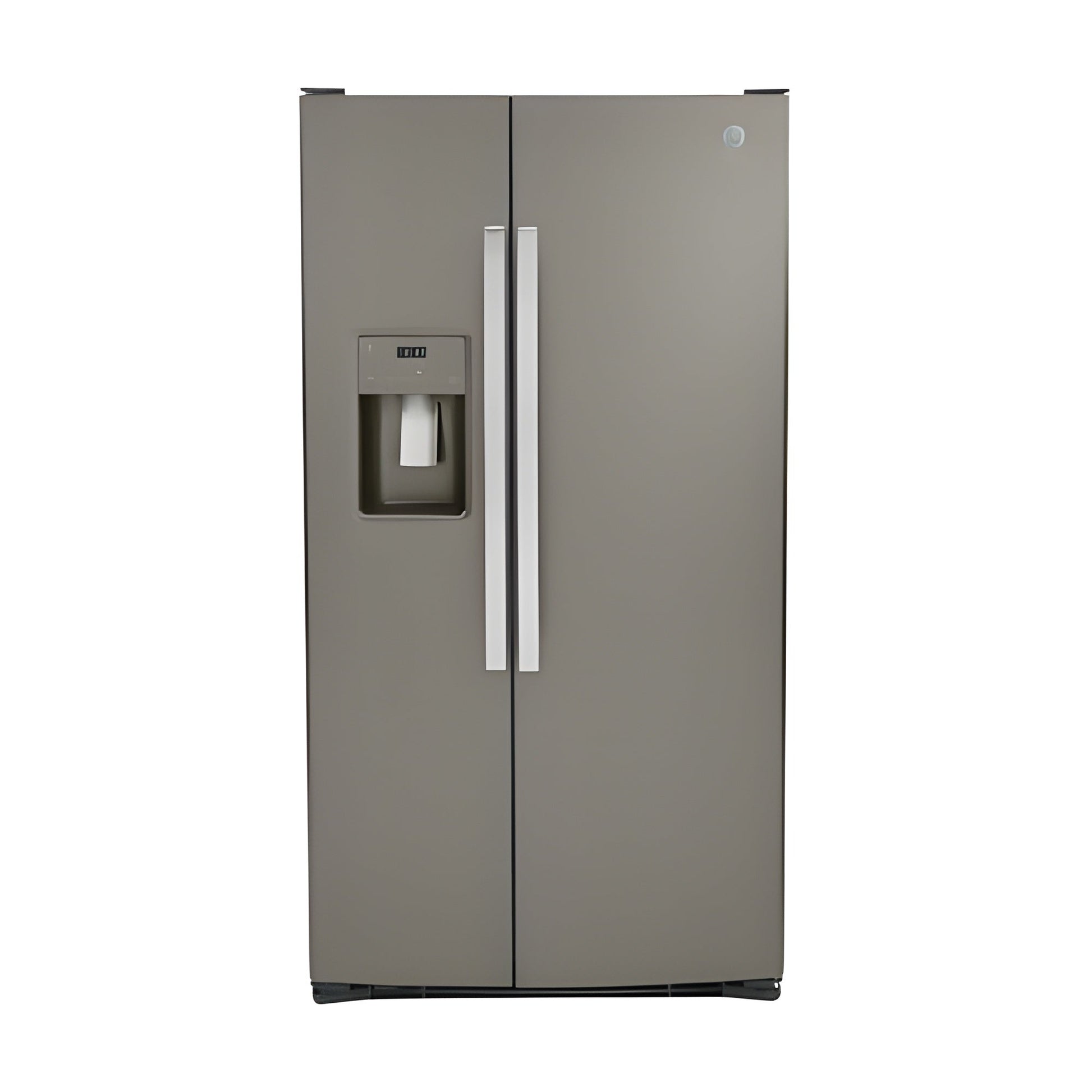 Q: What are the key features of the GE GSS25GMPES 25.3 Cu. Ft. Side-By-Side Refrigerator?