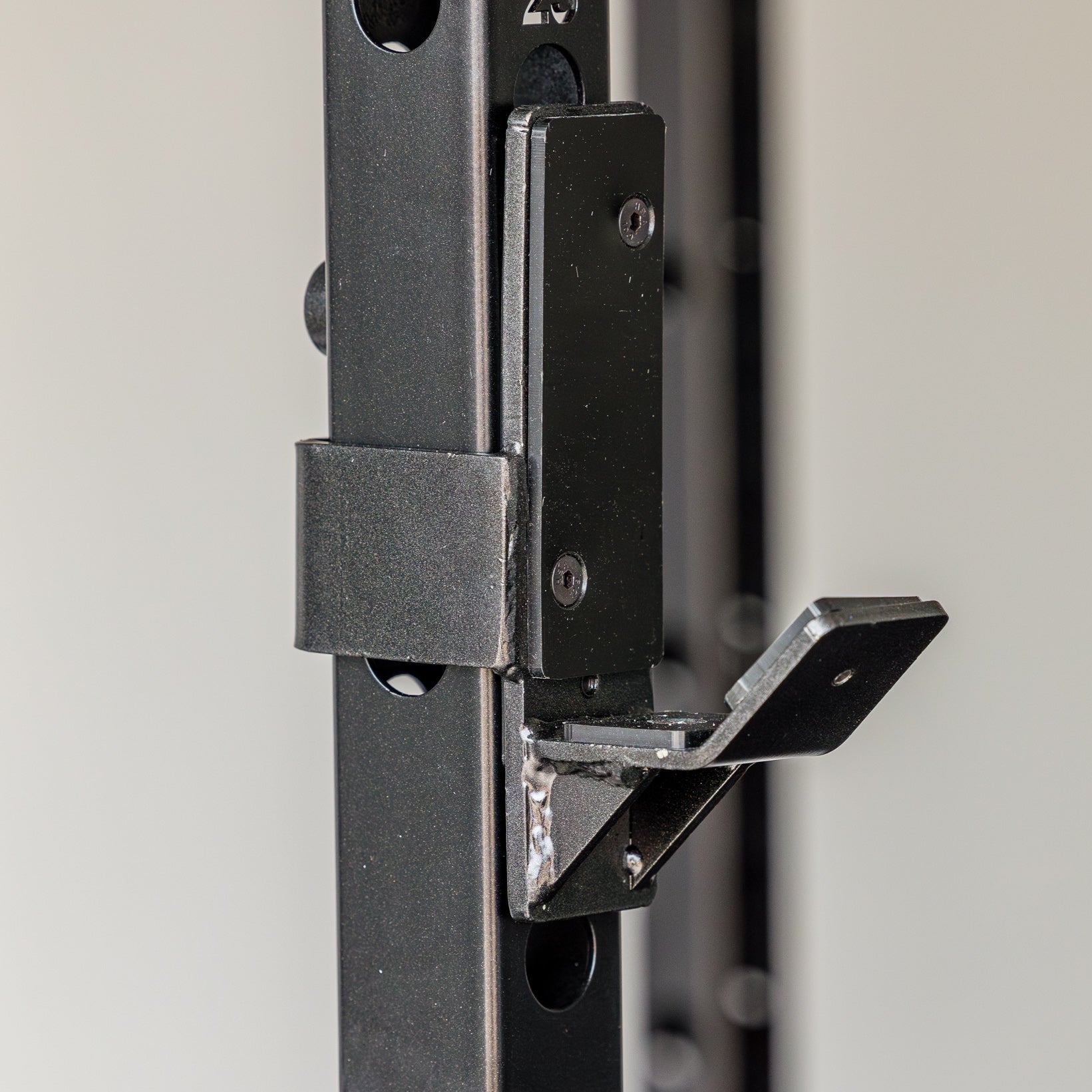 J-cups are three-pad protected to prevent your barbell from getting damaged when racked. 2" X 2" Steel tubing supports up to 700lbs static weight capacity. Sleek design, laser-cut numbers on uprights every two holes. Extended pipe safeties and extra gussets at the top of each upright add extra stability.Â