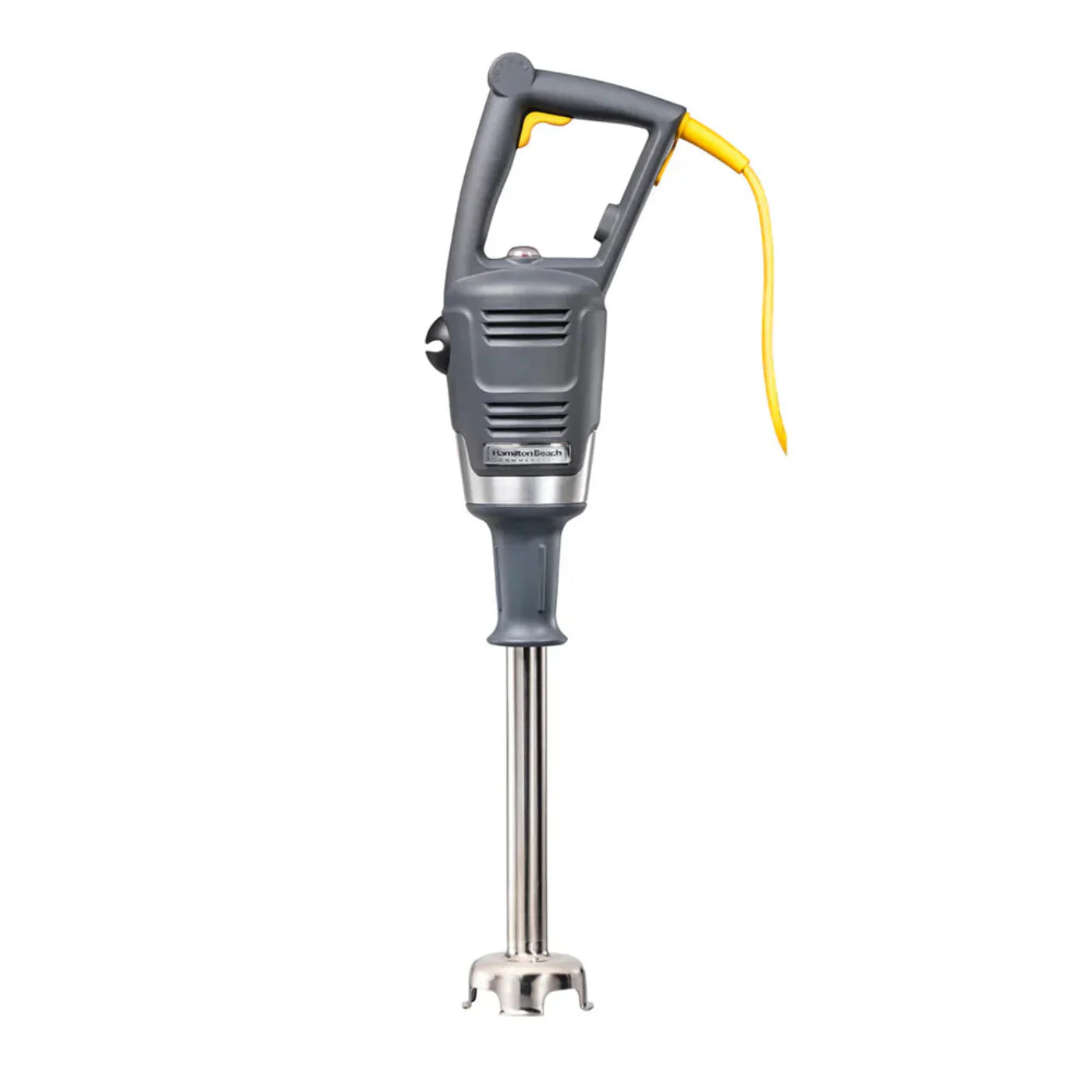 Discover the versatility and professionalism the Hamilton Beach HMI012 BigRig 12-inch Immersion Blender brings to your hotel, restaurant, or catering service. Equipped with a variable-speed dial, this immersion blender excels in heavy-duty tasks such as blending soups and pureeing sauces effortlessly. Designed to meet rigorous SAFETY standards, it's NSF Listed to ensure public safety, health, and environmental compliance, and it also adheres to Conformance European (CE) guidelines. It enhances your kitchen's productivity with its innovative design, facile speed adjustment, and comfortable operation, all while ensuring a secure blending process. Its sturdy build and practical features like an easy-to-wrap serviceable power cord ensure this kitchen indispensable stands the test of time, promising long-lasting service. Relish in the convenience and advanced performance it brings to your culinary creations.