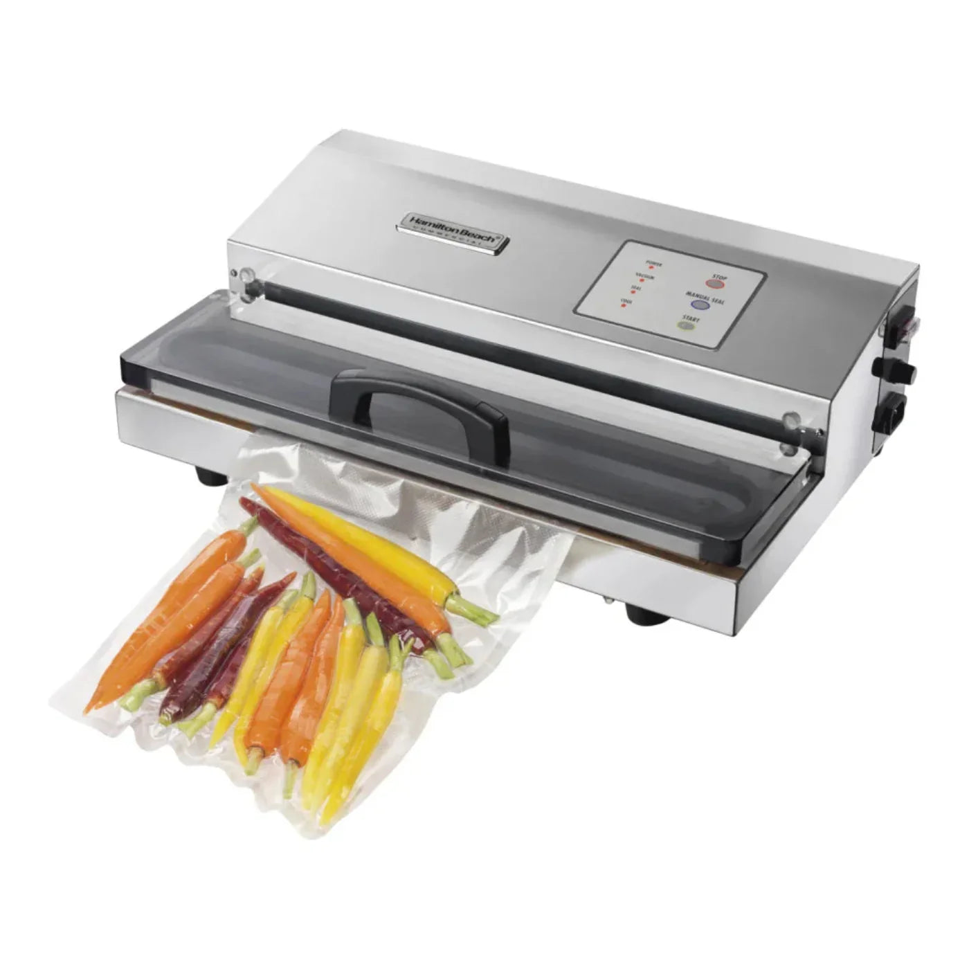 Elevate your kitchen's efficiency and preserve the freshness of your favorite foods with the Hamilton Beach PrimaVac 406 16" Chamber Vacuum Sealer. This model exemplifies the perfect blend of durability and functionality, designed for the fast-paced demands of hotels, restaurants, and catering services, ensuring your food's taste and texture are locked in for longer periods. With its robust stainless steel construction, the PrimaVac 406 stands up to the bustling environment of commercial kitchens, offering ease in maintenance and longevity. Featuring a powerful double-piston pump, this vacuum sealer creates airtight seals in mere seconds, enhancing the preservation process whether you're packaging meat, cheese, vegetables, or nuts. Additionally, its transparent lid and simple one-touch controls elevate user-friendliness, making vacuum sealing a breeze for professional settings. Certified by NSF International and holding ETL certification, it meets the highest standards for electrical product safety in North America. A seamless addition to any culinary establishment looking to optimize food preparation and waste reduction.