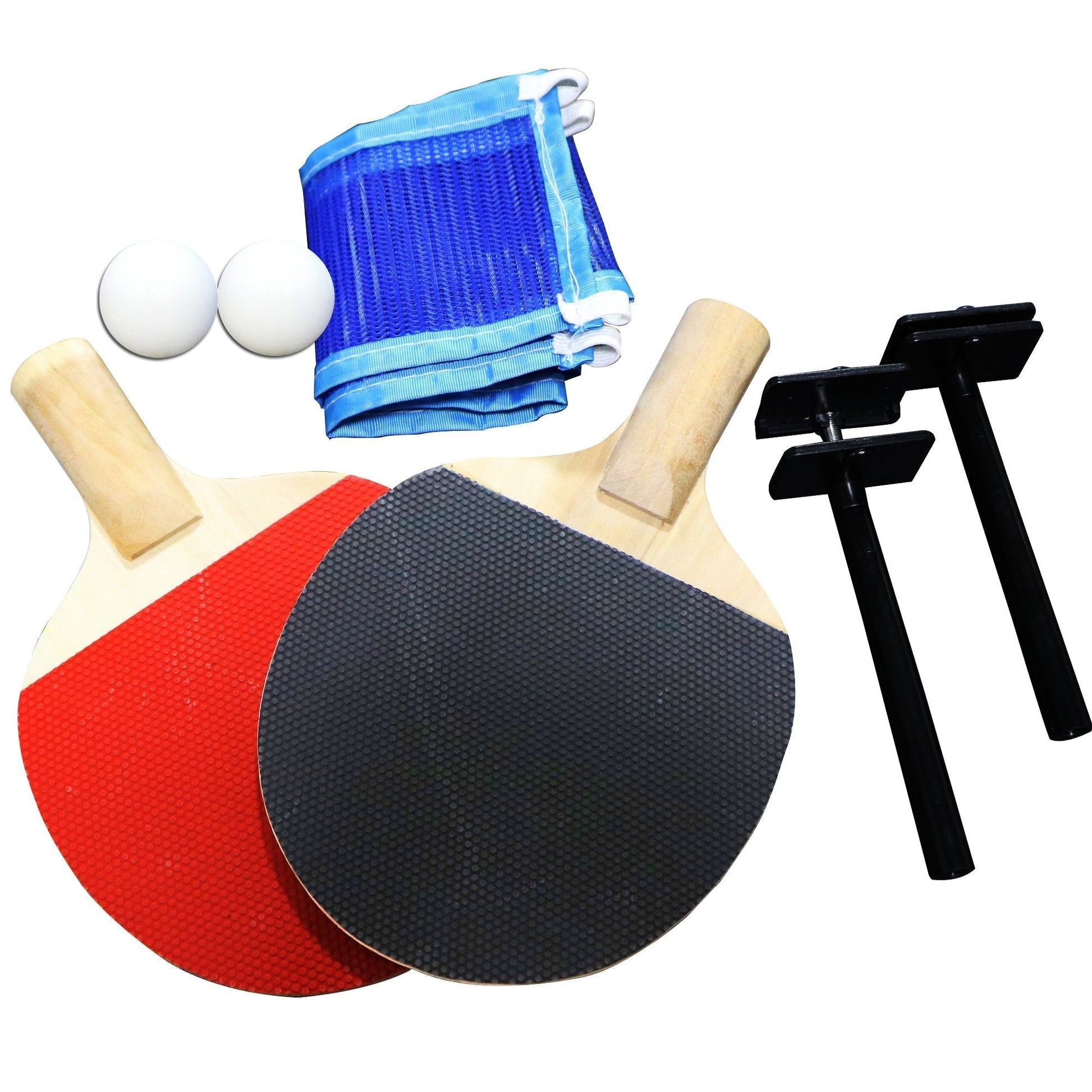 Includes: 2 - 3" strikers and 2 - 2.5" pucks, one table tennis top, two table tennis paddles, two table tennis balls and one table tennis net and post set