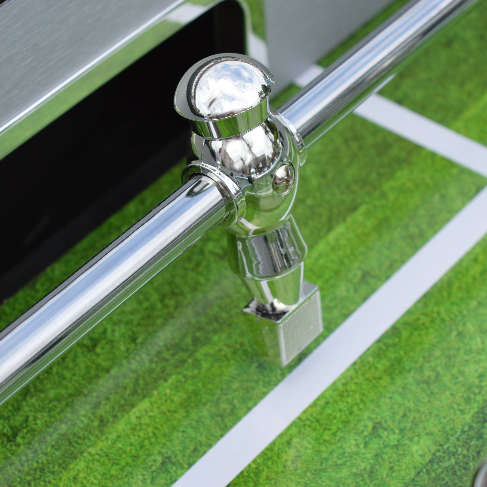 To better defend you goal, the end rod is set up with a three goalie configuration. Side ball return makes it easy to grab the foosball to start another enjoyable game. We've even added the convenience of keeping your refreshments close by with four built-in stainless steel drink holders!