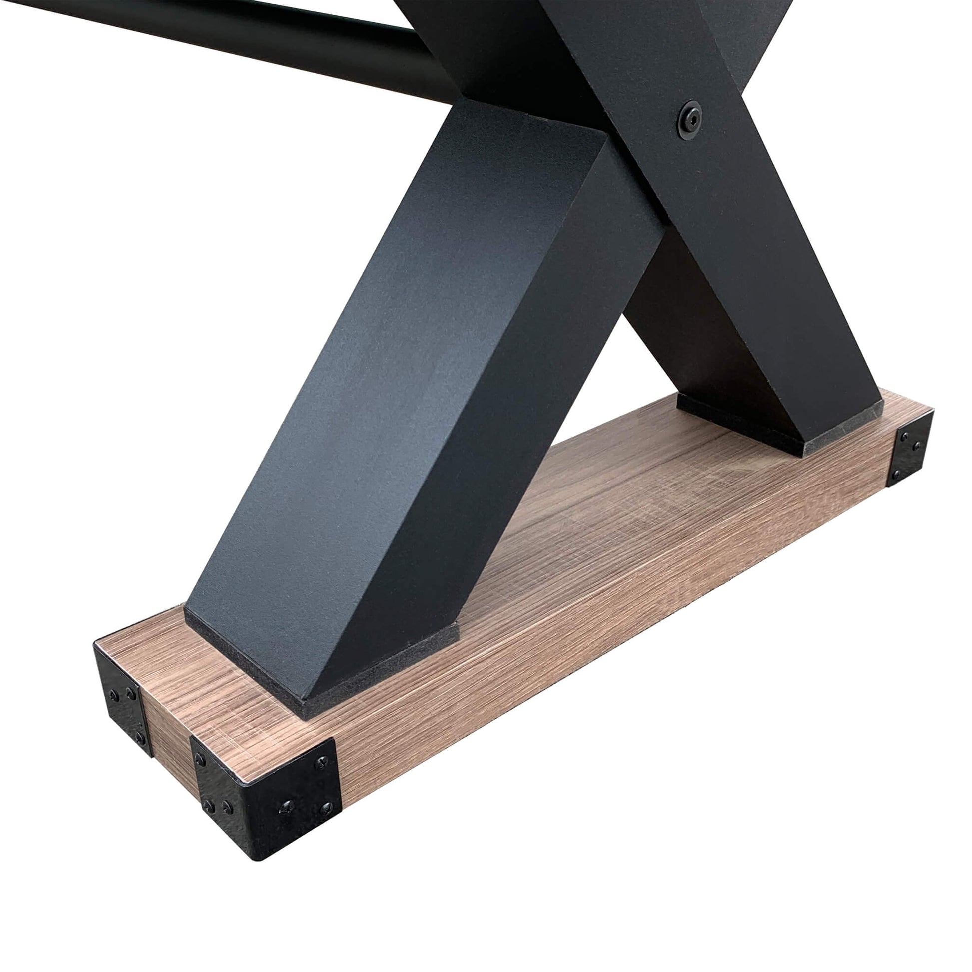 The Hathaway Excalibur 9ft Shuffleboard Table is crafted from engineered wood featuring a sturdy, X pattern support base that delivers rock solid stability. The well-built cabinet of the