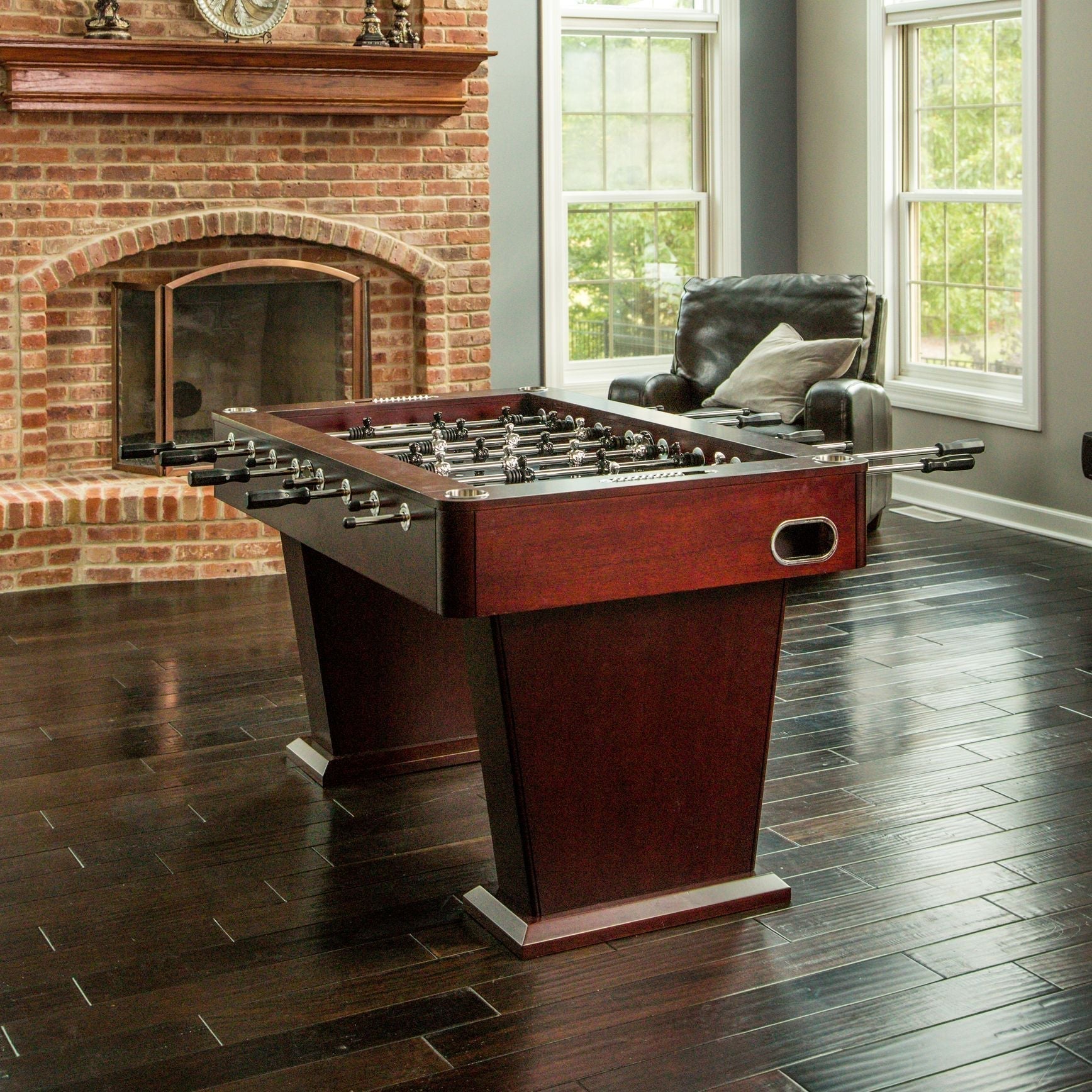 It's playable furniture that will offer a grandeur effect to your home. But this design is not just for show. Its sturdy, tapered pedestal leg design in addition to an added base plate creates fortified steadiness to withstand the highest competition. Cross supported playfield ensures leveled evenness for accurate play.
