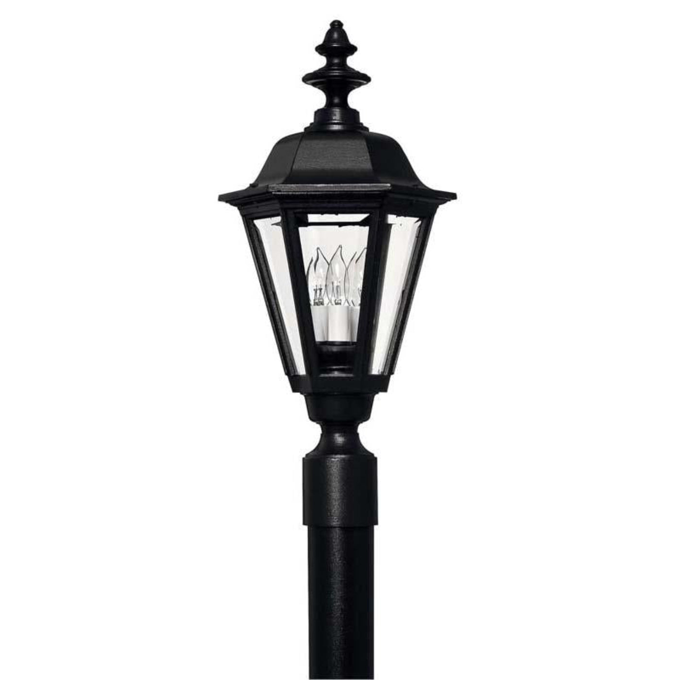 Manor House is a classic lantern design featuring durable cast aluminum, clear beveled glass panels and a bold Black finish. Select-A-Lite options come standard with both candelabra and medium based sockets.