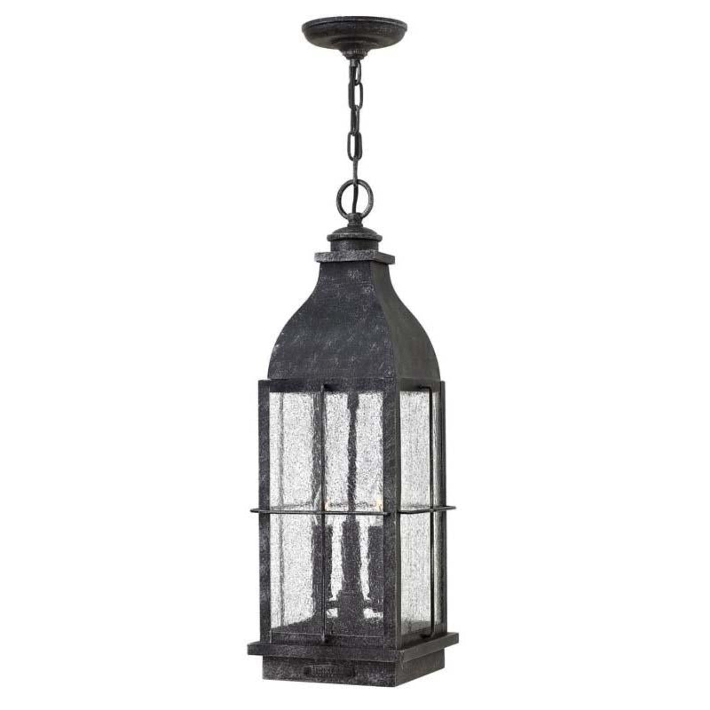 Binghams traditional style recalls a turn-of-the-century gas light reproduction. The vintage look is nautical in nature and recognizes Hinkleys origins on the shores of Lake Erie. The aluminum and brass construction features clear seedy glass and a Greystone finish, while candelabra lamping completes the authentic style. The Heritage Collection encompasses premium outdoor fixtures that pay tribute to the nostalgia of America's past while reinforcing Hinkley's philosophy of timeless, quality design.