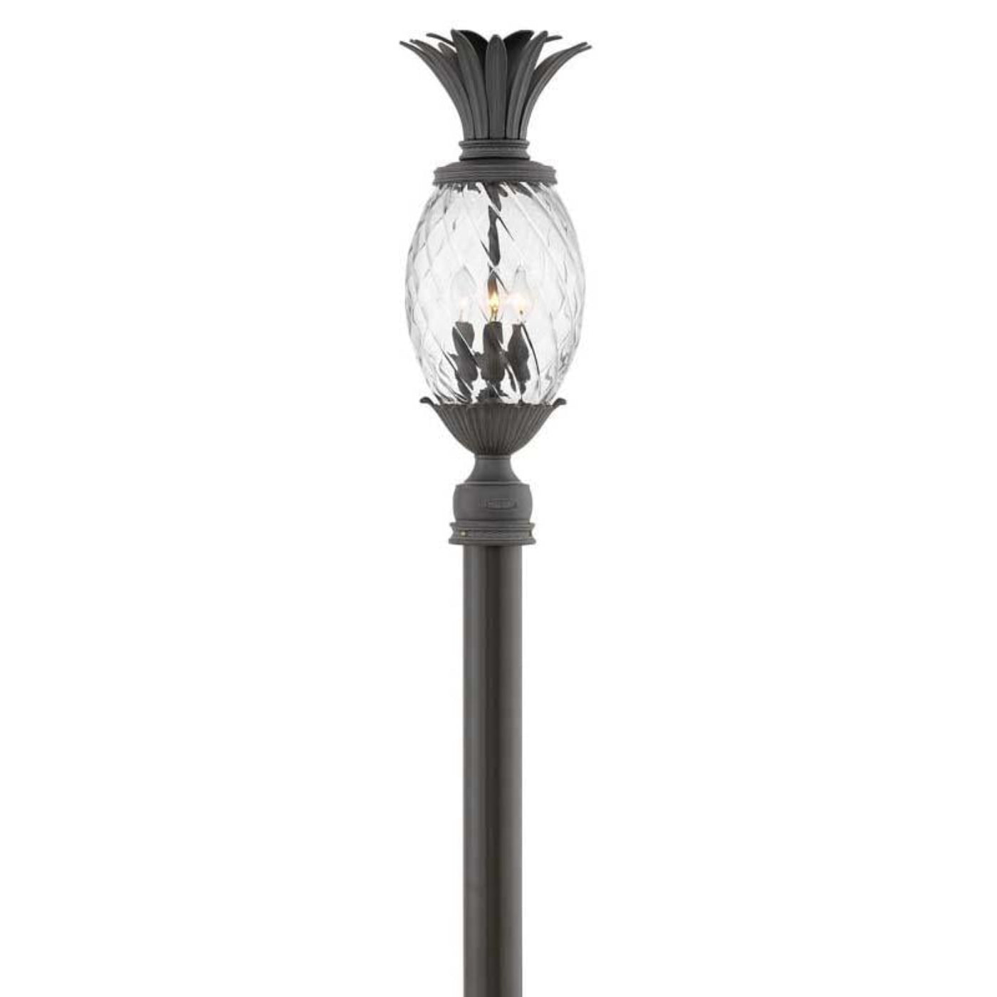 A Hinkley classic, the ornate Plantation collection features exceptional pineapple shaped optic glass, durable aluminum construction and elaborate, decorative cast detailing to create a noble statement.
