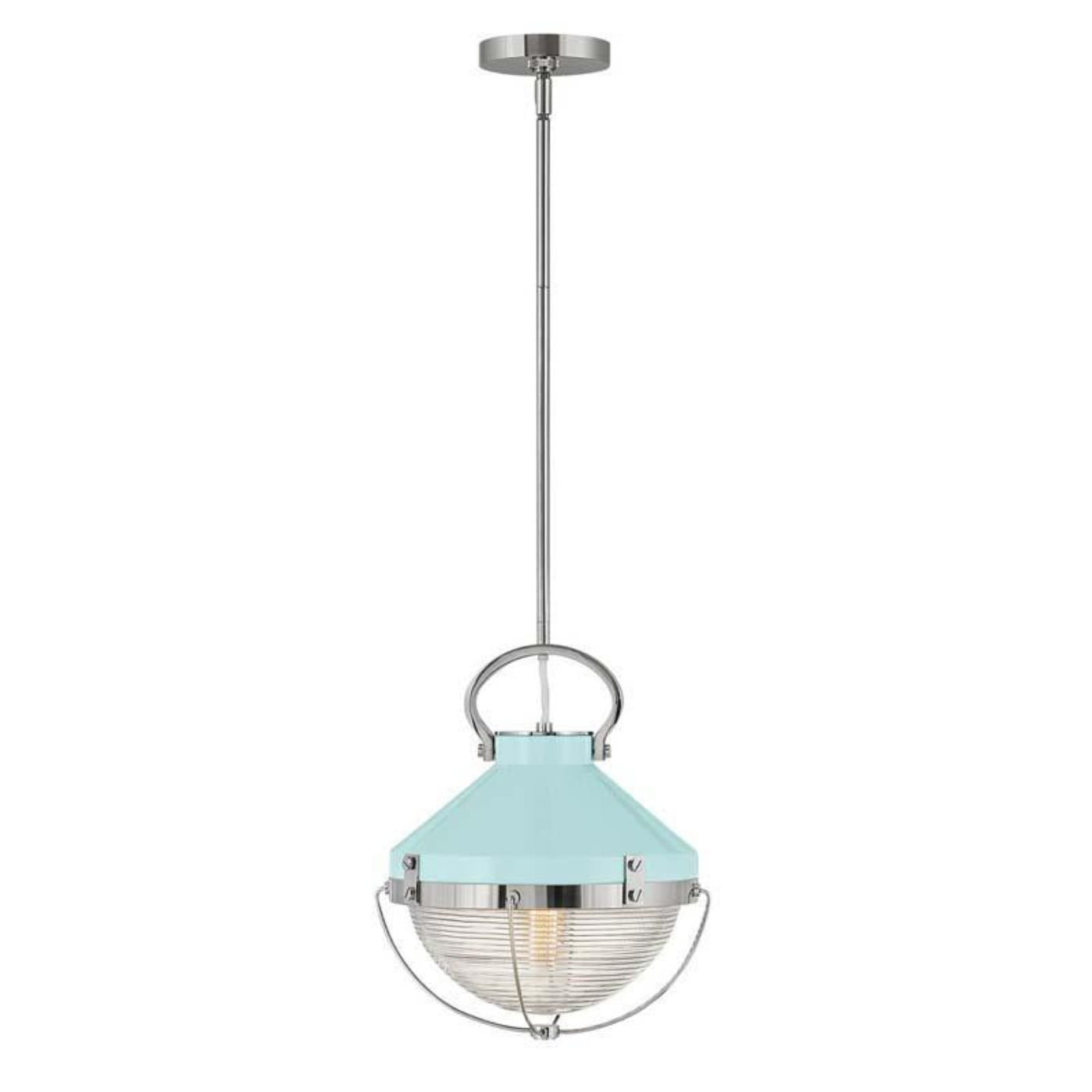 Smooth sailing ahead with the striking Crew pendants. Chicly designed with a hint of coastal panache, the pressed holophane glass globes are covered in a wire cage inspired by vintage maritime lighting. Offered in crisp Polished Nickel, Black with Heritage Brass, or Robins Egg Blue finishes, the single or linear pendants enhance modern, rustic, industrial or coastal spaces alike.