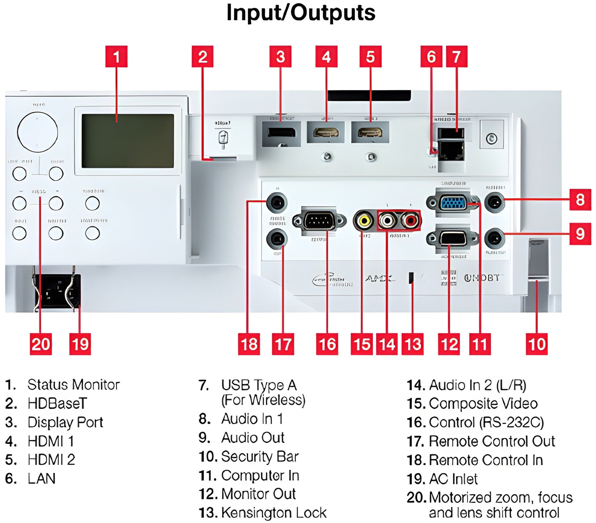 A: The CP-WU8600W offers extensive connectivity options, including HDMI, VGA, DVI, and LAN ports, as well as USB ports for seamless connection to computers, media players, and networked devices.