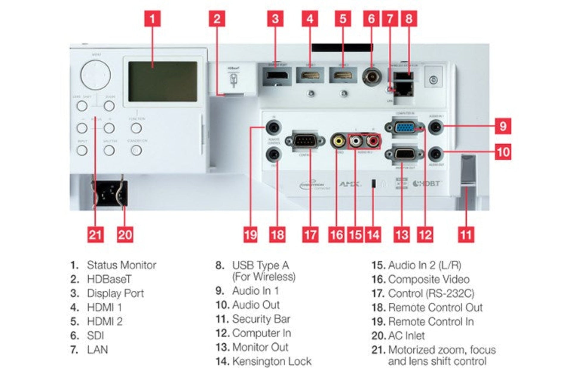 Inputs | Composite (RCA), VGA In (Dsub-15pin), HDMI, Network (RJ-45), DisplayPort, HDBaseT (RJ-45), HD-SDI (BNC), Audio In (Mini Jack) |