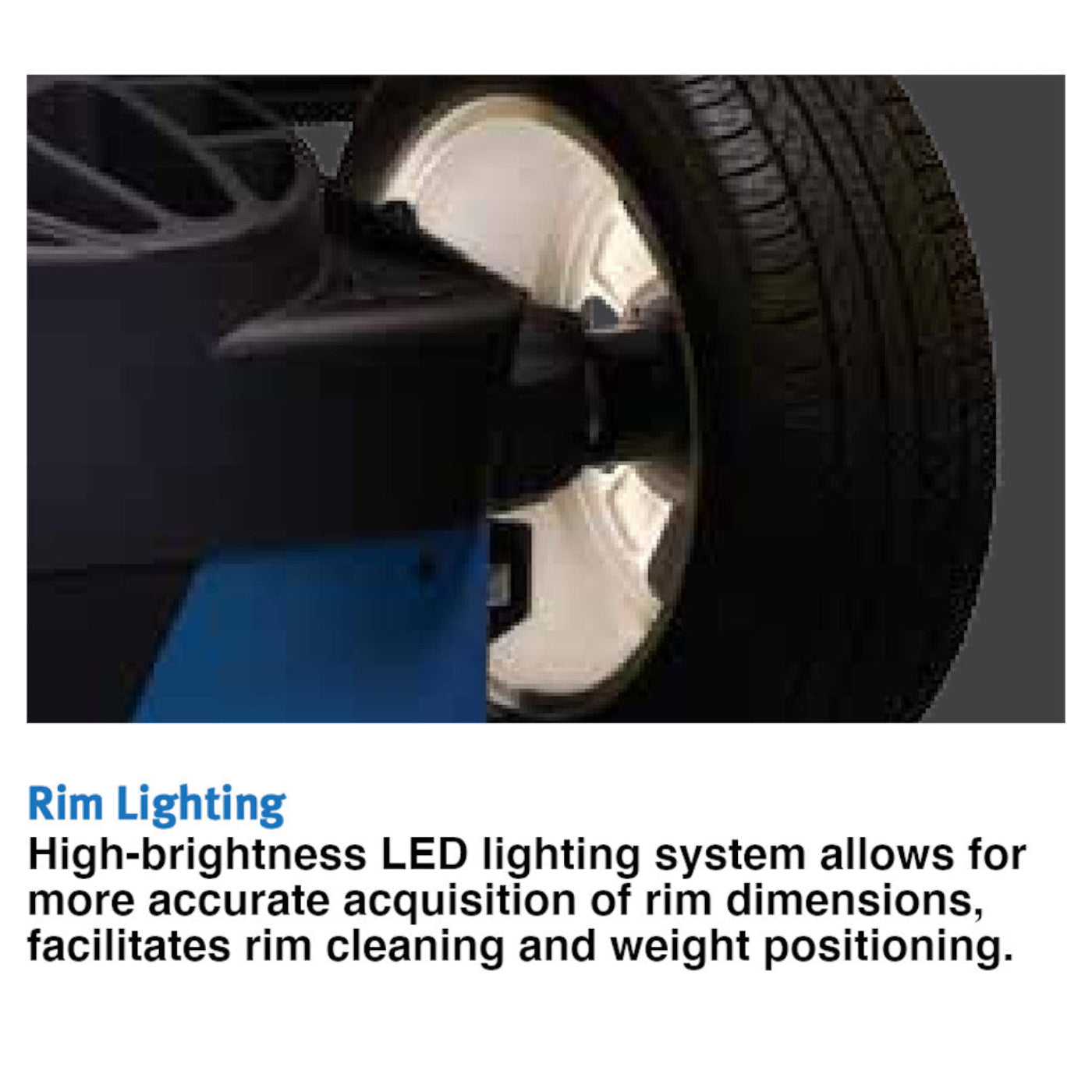 Rim Lighting: High-brightness LED lighting system allows for more accurate acquisition of rim dimensions, facilitates rim cleaning and weight positioning.