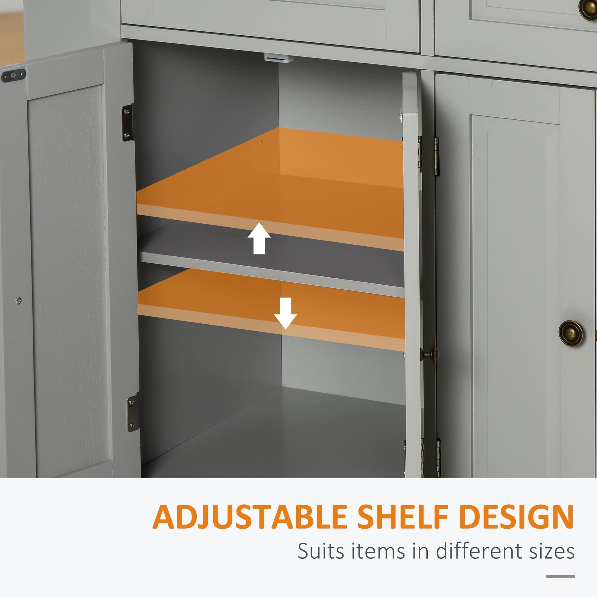 • Ample Storage: Includes shelves, drawers, and cabinets to keep kitchen essentials organized and within reach.