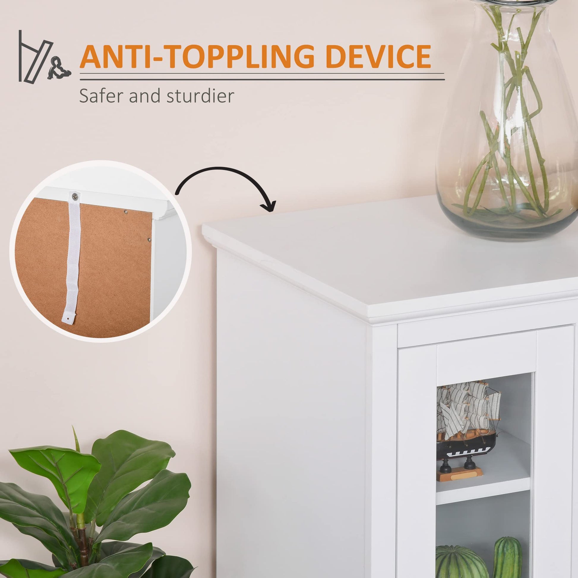 HomCom Sideboard Buffet Cabinet with Storage, Kitchen Cabinet Coffee Bar Cabinet with Glass Doors for Living Room, Kitchen, White - B08YN1ZYTJ