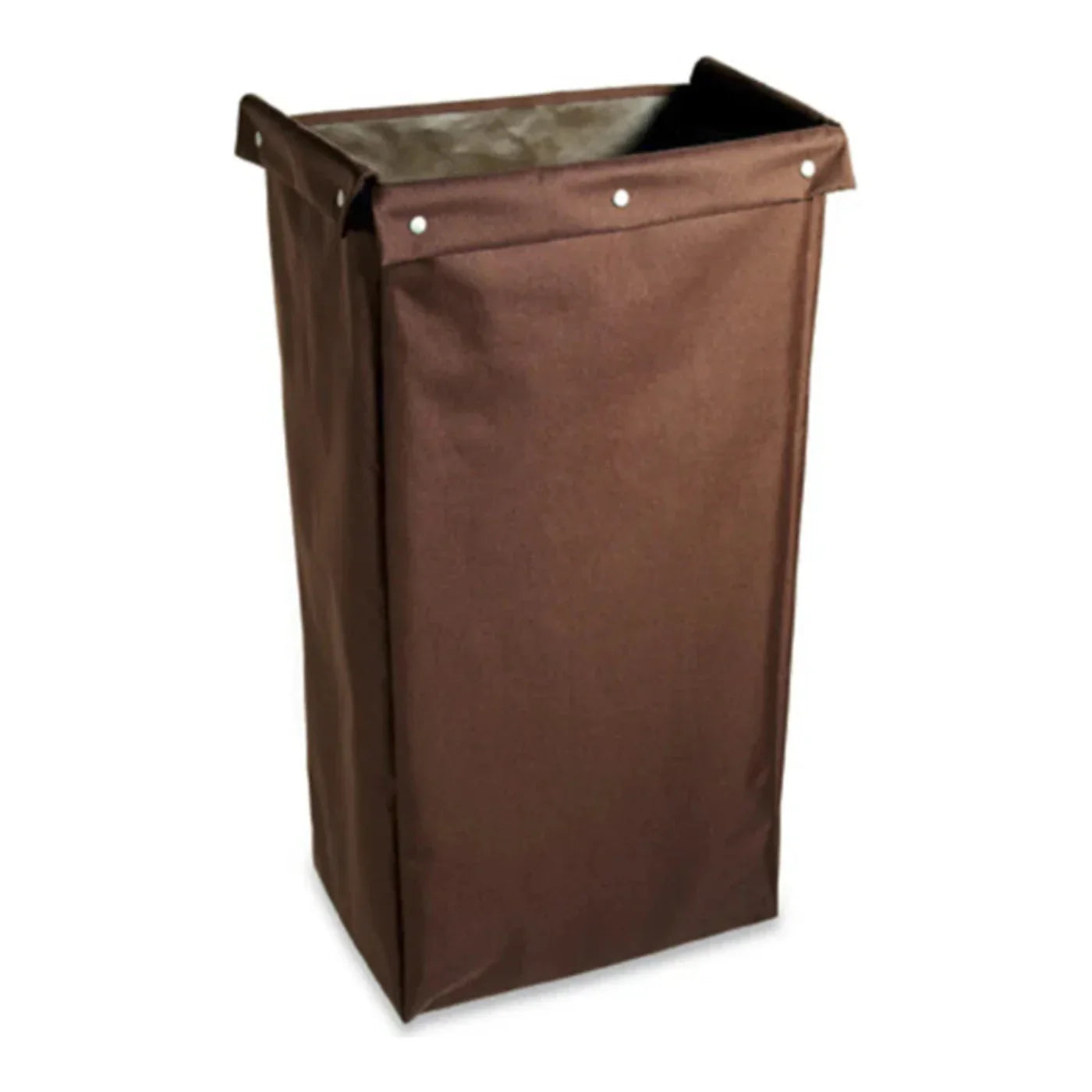 Introducing the Hospitality 1 Source HCBLS36BR Loop and Snap Cart Bag, engineered for the rigorous demands of the hospitality industry, including hotels, restaurants, and catering services. Crafted from heavy-duty 600D polyester material with a PVC backing, this cart bag is designed to resist moisture, ensuring the contents remain dry and secure. The enhanced durability is complemented by extra thick nylon straps for easy transport and a cloth-covered bottom that maintains its shape over time. This spacious bag offers ample room for storage and organization, measuring 18 inches in width, 36 inches in length, and 12 inches in depth. Its brown hue adds a touch of elegance, seamlessly blending with professional environments.