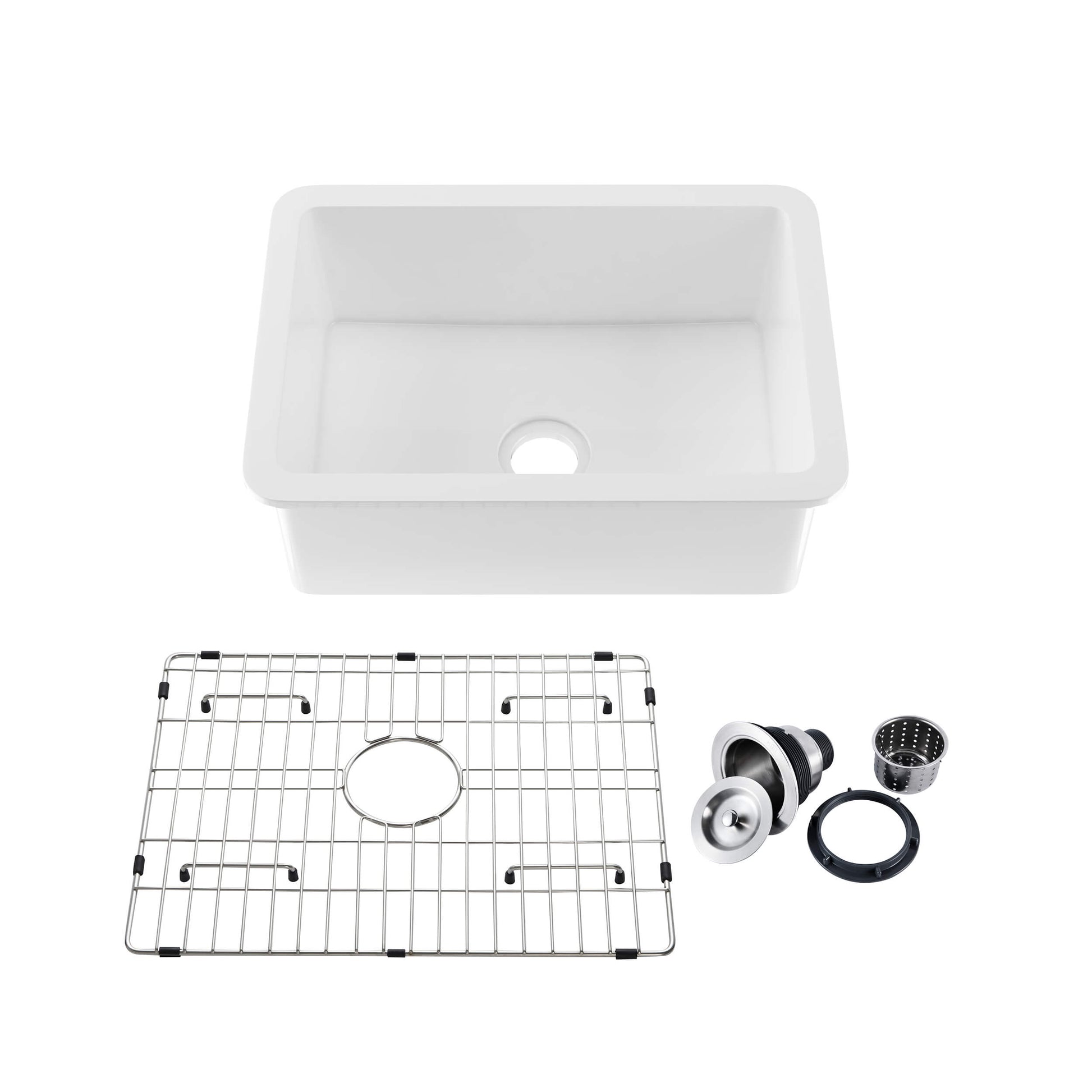 Kibi 27" x 19" x 10" Landis Series Undermounted Single Bowl Fireclay Kitchen Sink In Glossy White - K2-S27