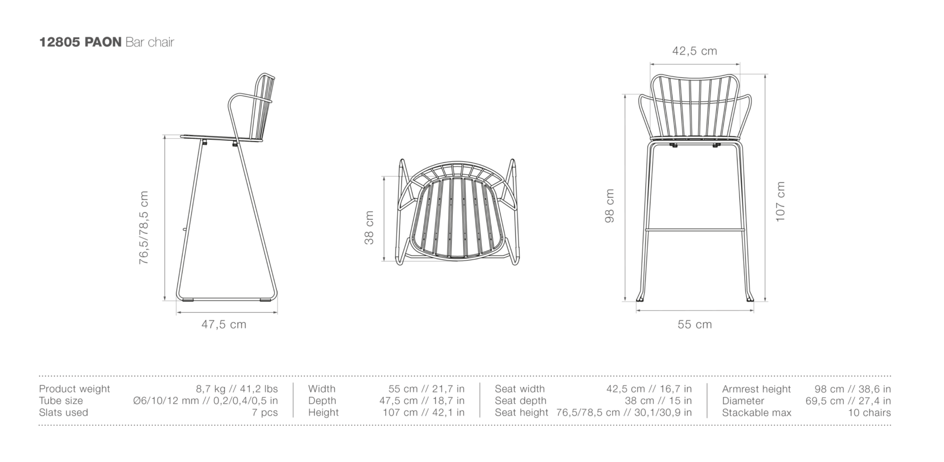The PAON Outdoor Bar Chair by Houe combines sleek Scandinavian design with durable materials. Featuring a powder-coated steel frame and a warm bamboo seat, this outdoor bar chair offers both style and comfort. With a high backrest and armrests, it suits patios and outdoor dining tables perfectly. Plus, it pairs well with teak outdoor furniture and modern sofas, making your outdoor space inviting and elegant.