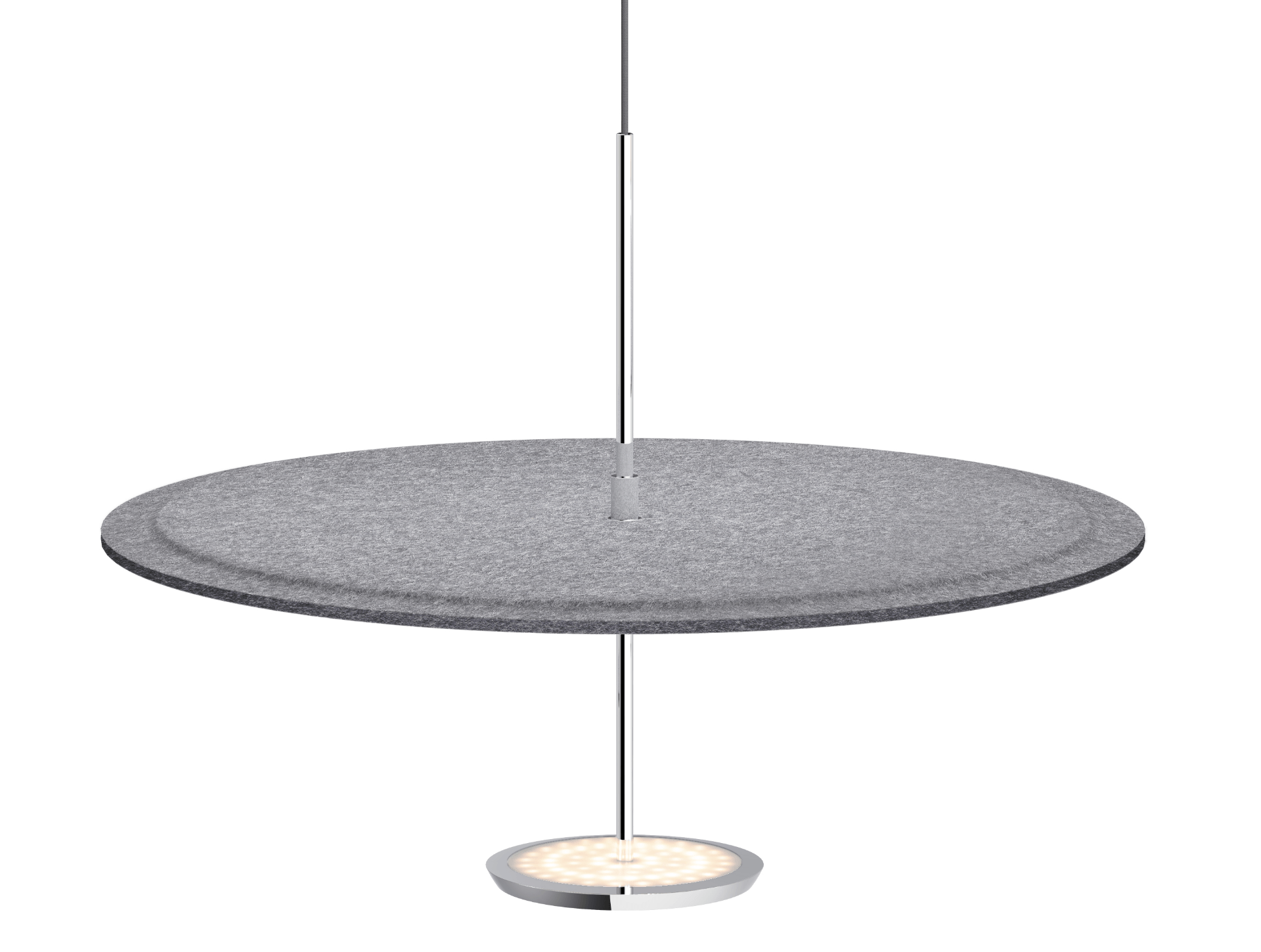 The Sky Sound pendant light by Pablo Designs brings a perfect blend of style and functionality. The elegant PET felted disc shade reduces ambient noise, while providing bright, omni-directional illumination. Available in 18", 24", and 32" sizes, the Sky Sound creates a calming and harmonious atmosphere in any room. It’s ideal for residential and commercial spaces alike, enhancing both the décor and acoustics.