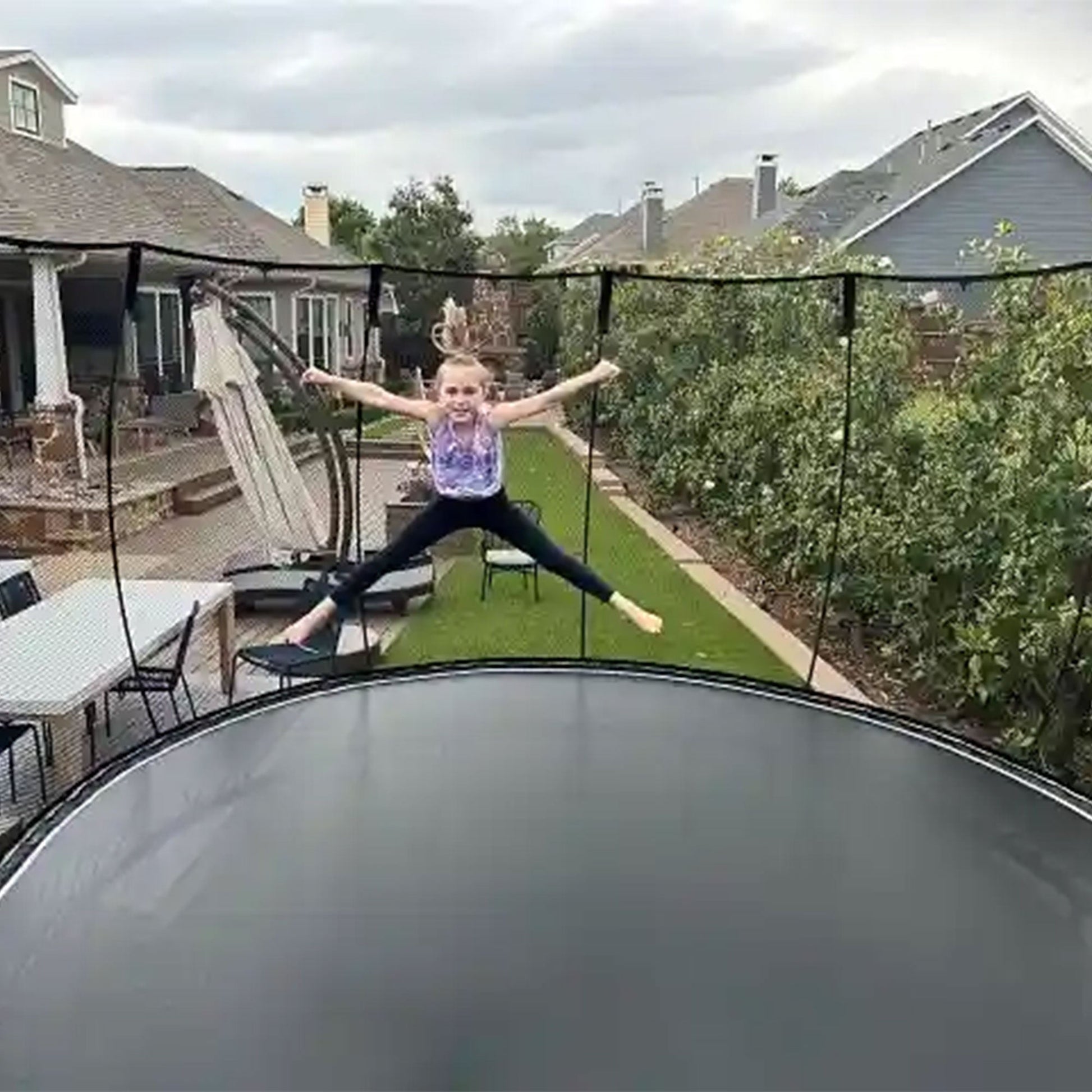 With ample space, this jumbo oval trampoline ensures boundless fun while helping you burn off energy and stay active. Whether you're practicing your flips, perfecting your jumps, or simply enjoying the thrill of bouncing, this attention-grabbing wonderland guarantees an exhilarating experience like no other.