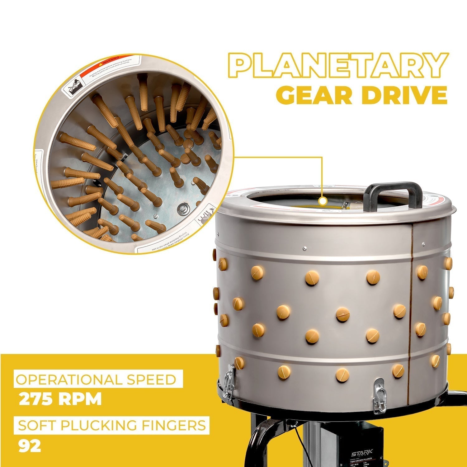Powerful 750W Motor β Provides efficient and fast feather removal, saving time on poultry processing.
