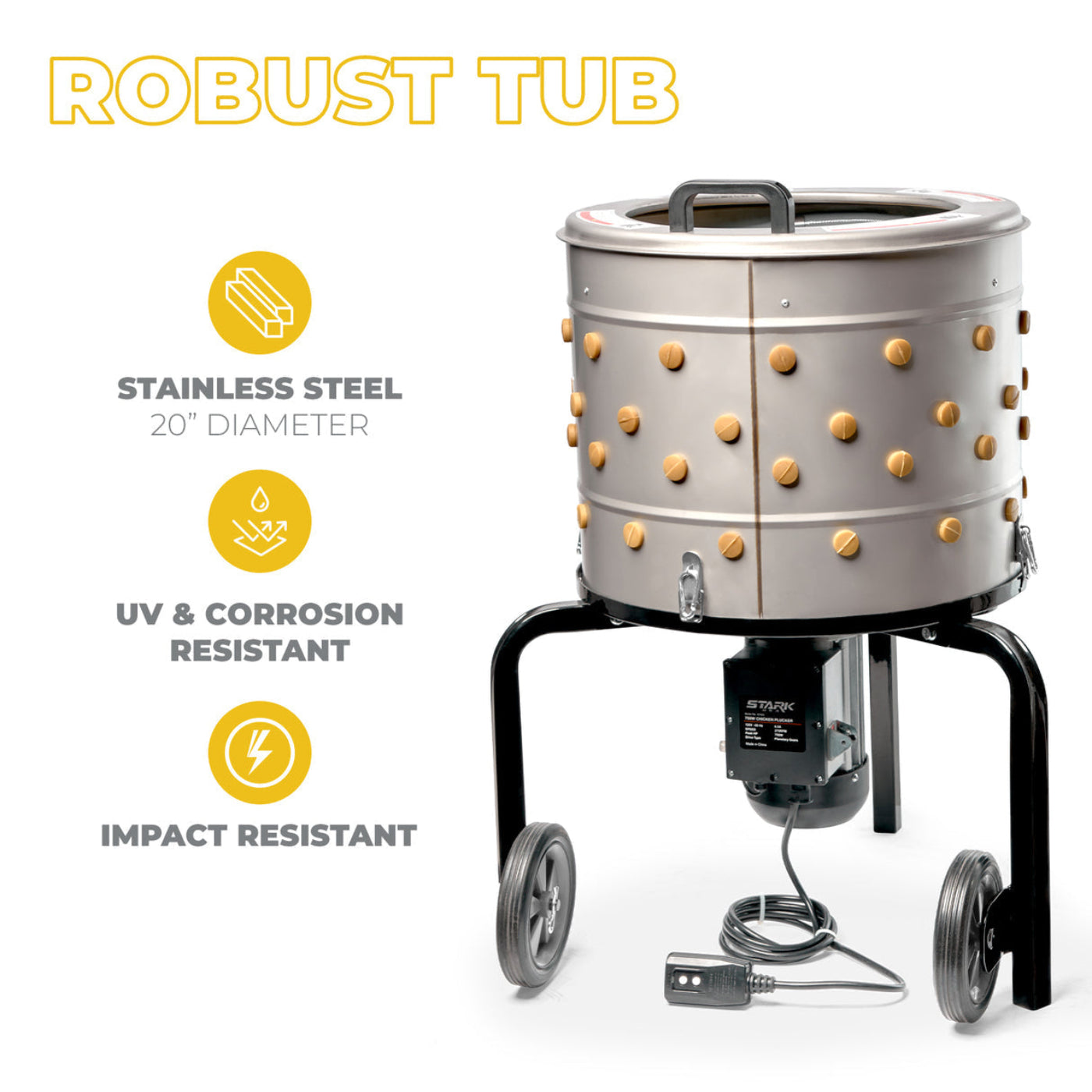 - 750W Motor for Effortless Feather Plucking - With flawless operation and continuous performance throughout the day, plucking feathers has never been easier