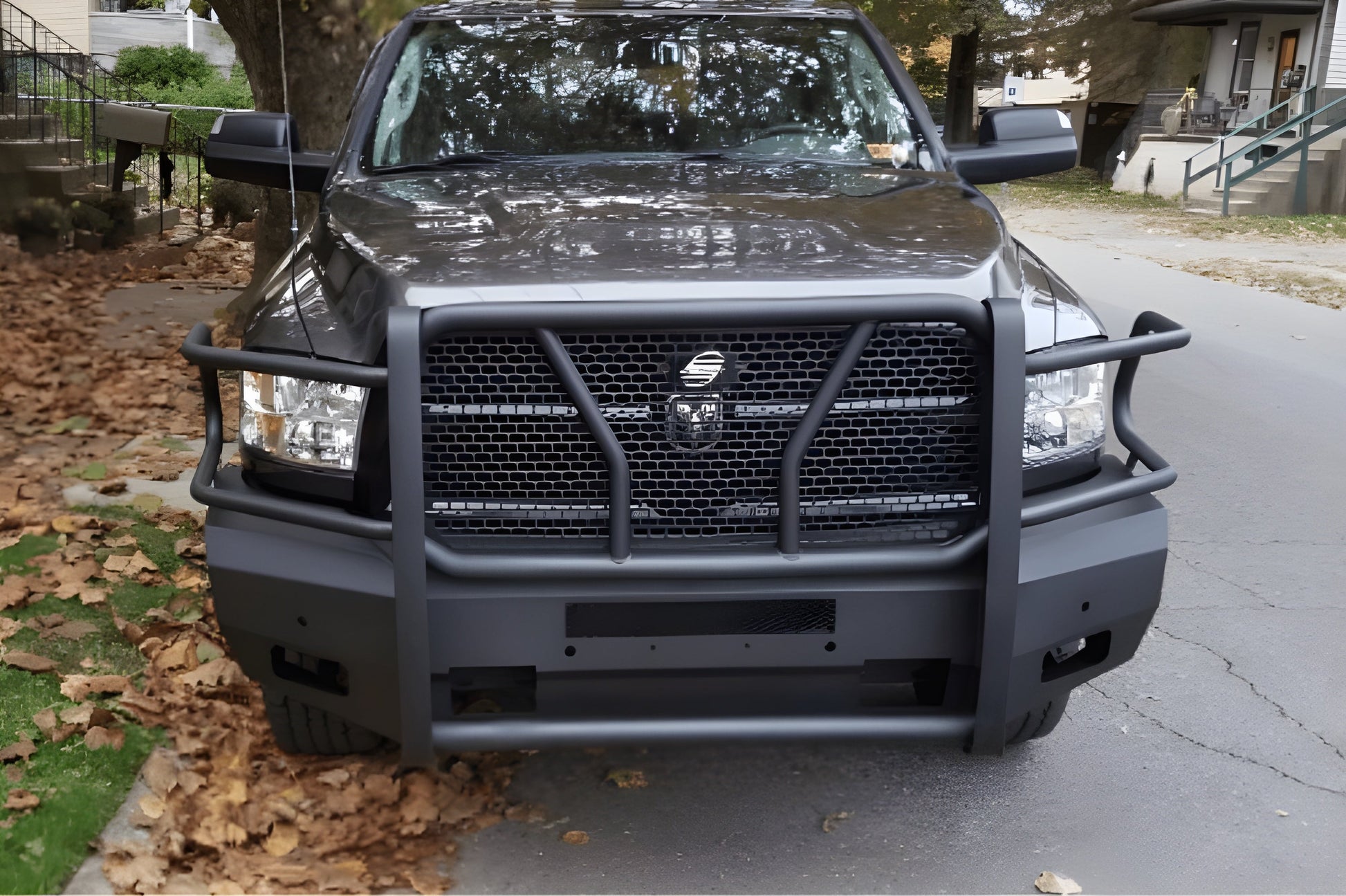 A: Made from high-strength steel with a black powder-coated finish, this bumper delivers enhanced protection and long-lasting durability. The easy, direct bolt-on installation adds a rugged look and improved front-end performance for your Dodge Ram truck.